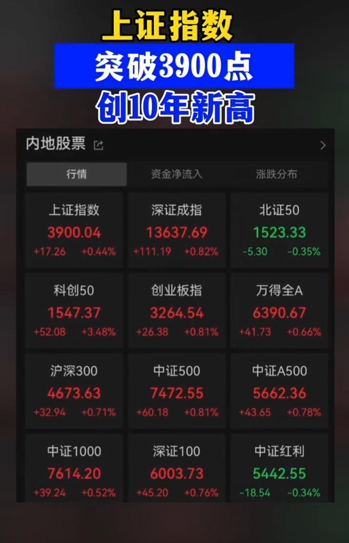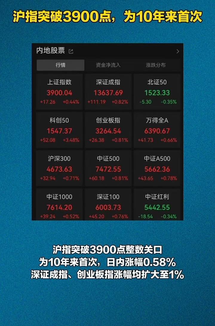 刚刷视频看到:泸指突破3900点,10年来首次!这是是不是代表涨啊?是代表利好?