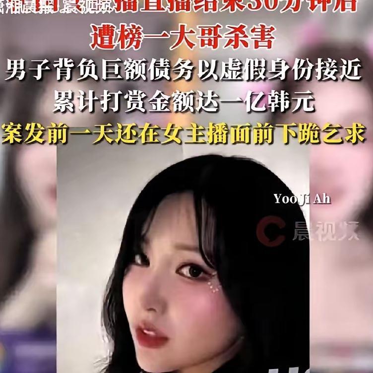 25岁韩国女主播Yoo Ji Ah下播半小时就被打死抛尸山沟,凶手竟是天天给她刷火箭的“56级贵族”崔大叔。崔大叔在直播间装IT公司CEO,实则负债累累,靠砸50万人民币打赏当“榜一”。求而不得后他心态失衡,酿成悲剧。这事儿戳破了直播打赏的虚浮——光鲜头衔多是用钱堆的,虚拟追捧藏着致命风险。你怎么看?