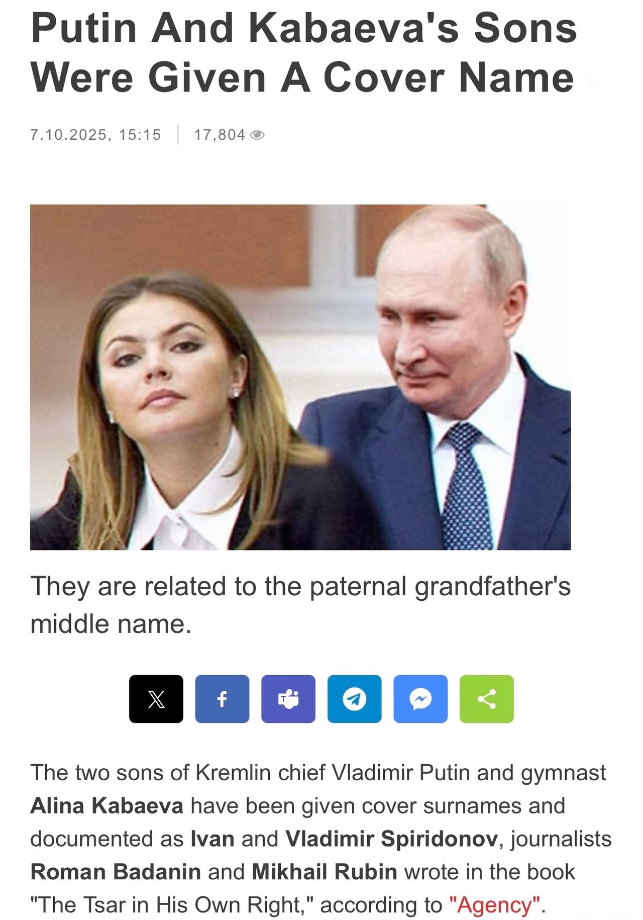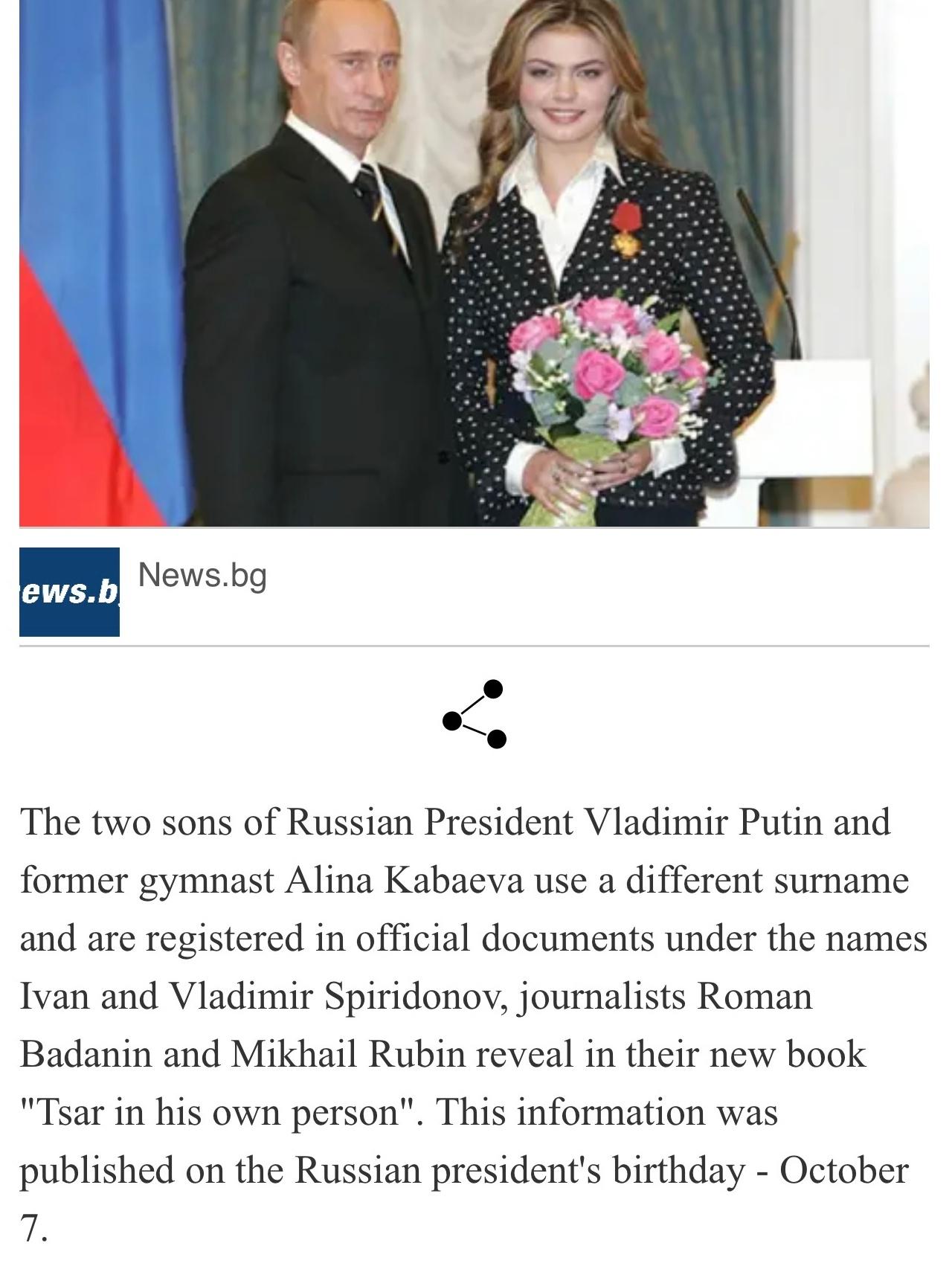 外媒首次公开了普京总统和卡巴耶娃所生儿子的照片。 两个儿子,一个2015年出生于瑞士,一个2019年出生于莫斯科。目前分别住在瓦尔代和索契。 以前只是传闻卡巴耶娃(著名体操运动员)为普京生子,但外界从没见过孩子们的样子。这次公开的两个儿子照片,看起来都挺阳光健康,蛮可爱的。 说起来也挺有趣,所有普京孩子的消息,基本都是境外媒体曝出的,莫斯科沉默不语。当事人也从不出来证实。虽然真相还有待验证,但根据以往的经验,可信度还是相当高的。
