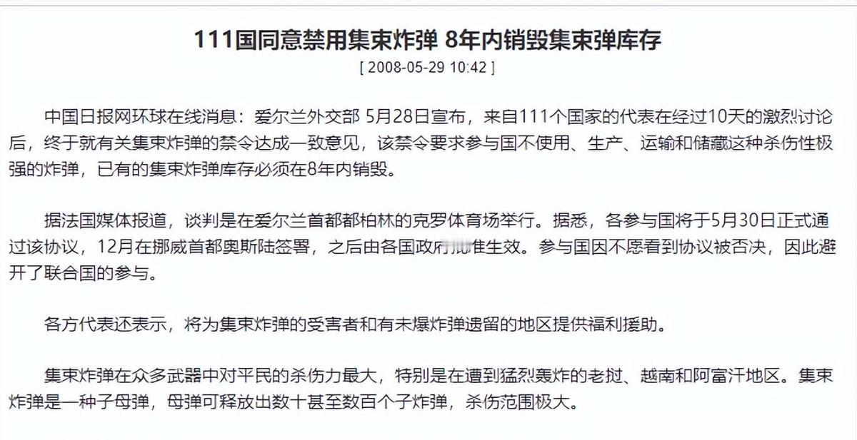 2008年,全球107个国家联合签署《集束弹药公约》,要求全面禁止和销毁这类武器,但中美俄等国却拒绝签字,引发持续争议。集束弹药俗称“子母弹”,一枚母弹可散播上百枚子弹,覆盖范围近七块足球场,对装甲集群杀伤力极大。但约30%的子弹会成哑弹,长期埋藏地下,随时可能被触发,造成平民伤亡。 美国在越南、伊拉克大规模使用集束弹,仅老挝就遗留超8000万枚未爆弹,至今每年仍有百人死伤。今年7月,泰国在泰柬边境冲突中仍在使用该武器。国际社会施压中国要求销毁,但中国出于国防安全考虑拒绝签字。中国国防起步晚,周边安全环境复杂,集束弹是对抗装甲威胁的关键自卫手段,且从未在实战中使用。 中国虽未签约,但长期协助多国扫雷,在柬埔寨、老挝等地清除数万枚爆炸物,并提供医疗、技能培训等援助。中国研发更安全的智能集束弹,降低误伤风险。外交部表示,支持在《特定常规武器公约》框架下平衡人道与安全需求。拒绝签字并非漠视生命,而是反对双重标准,捍卫国家安全底线。 素材来自网络,侵权联系删除