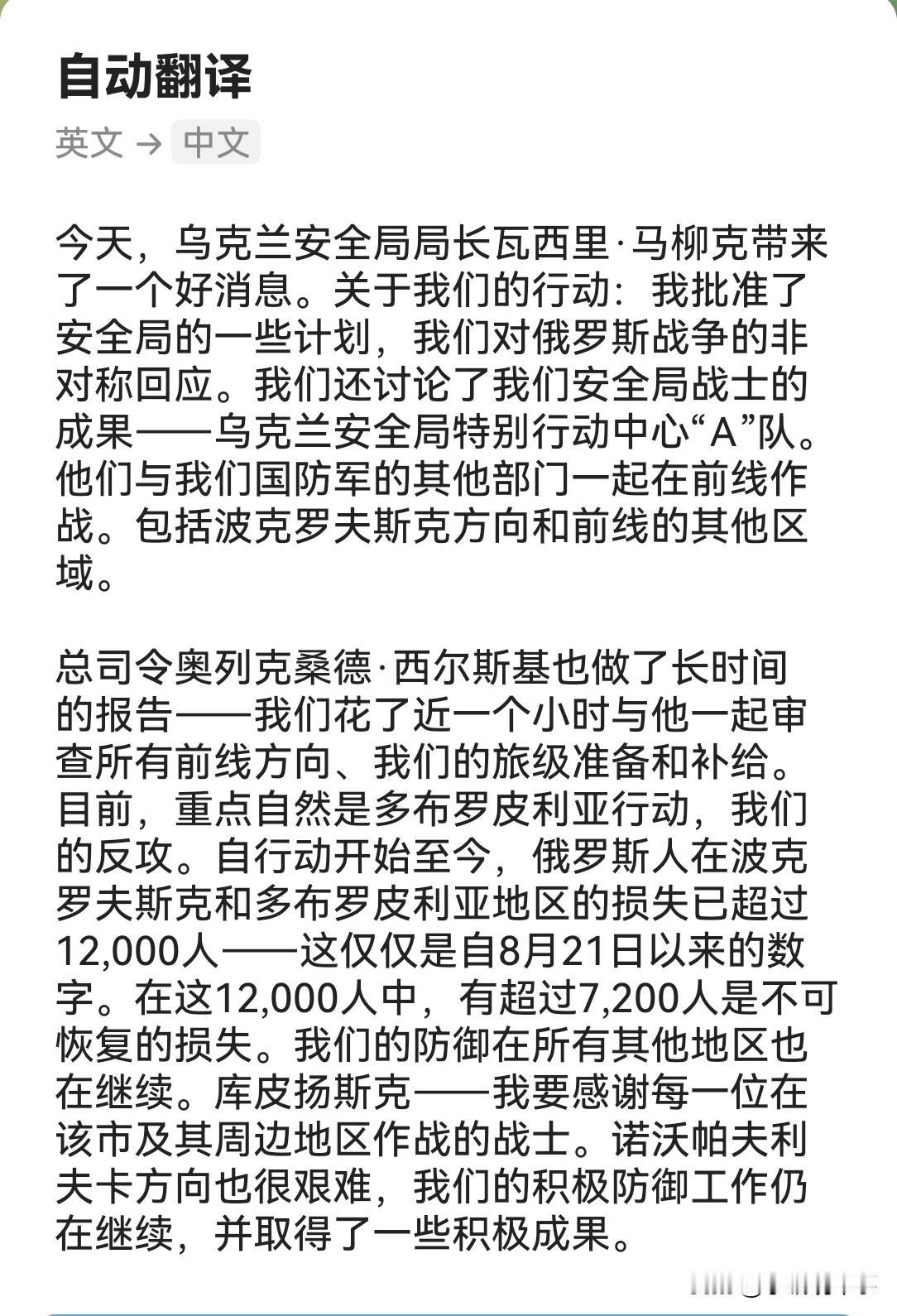 🇺🇦⚔🇷🇺乌克兰总统泽连斯基在晚间讲话中宣布批准了乌克兰安全局针对俄罗斯的行动计划。 泽连斯基还说,自8月21日以来,俄军在波克罗夫斯克(红军村)和多布罗皮利亚地区的损失已超过1.2万人,其中有超过7200人是不可恢复的损失。(显然是又一次夸大数字) 俄罗斯军事战报 俄罗斯前线战报 俄罗斯军事动态 顿涅茨克攻势 波夫罗夫斯克 俄罗斯炮兵旅