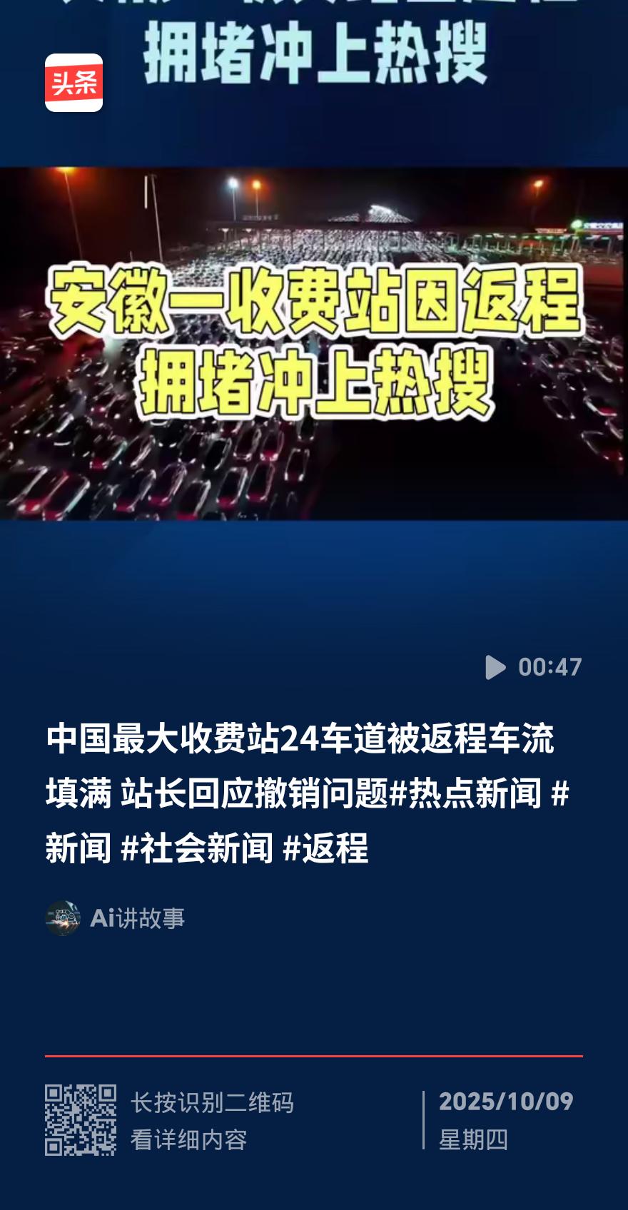 安徽吴庄收费站返程高峰创纪录:24车道全满,单日车流近15万 10月7日,国
