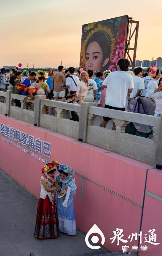 双节期间,泉州簪花围活动,现场树立的大幅赵丽颖簪花围海报!