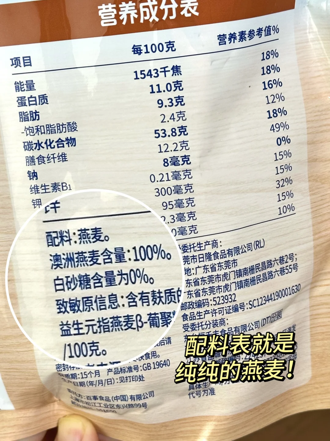 看了下配料表干干净净只有燕麦,里面还特含纤维Q益生元,富含膳食纤维☺️,健康轻负担,自律期的姐妹早餐放心冲它!!