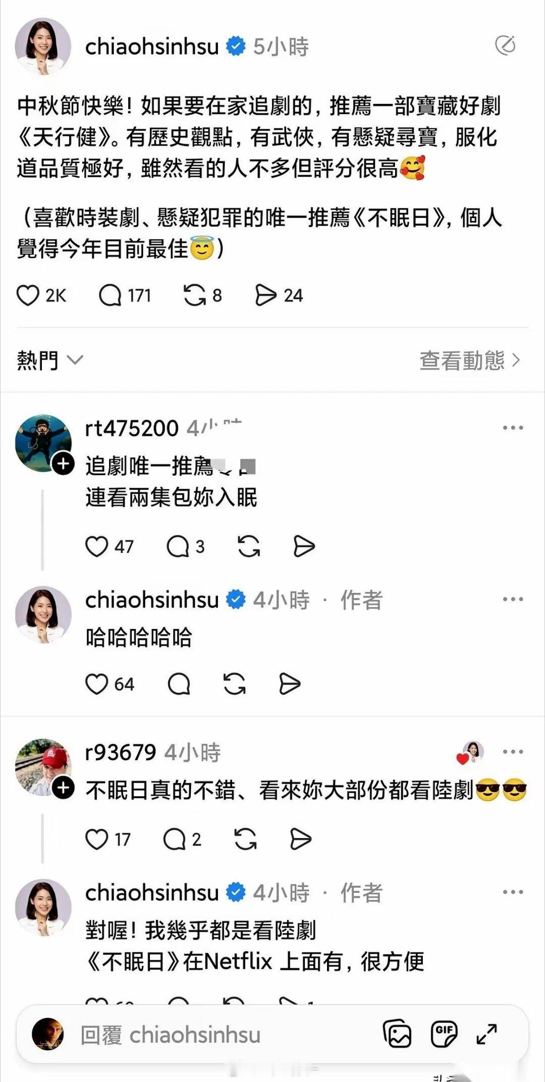 底下还一堆人喊“巧芯姐姐也追陆剧啊!”