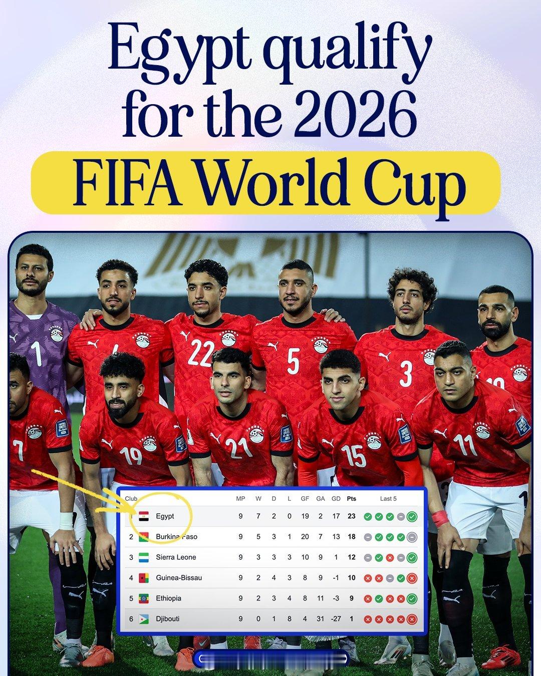 拥有萨拉赫和马尔穆什的埃及,成功从世预赛非洲区A组出线,成为第19支获得2026世界杯入场券的球队。
