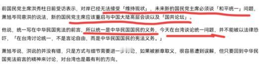 前国民党主席,洪秀柱女士出来表态了!她表示,大陆已经无法接受维持现状的情况了,未来新的国民党主席必须谈和平统一问题。 说真的,现在国民党里敢这么直白讲 “和平统一” 的,真心没几个。以前不少人总喜欢玩 “模糊套路”,嘴上喊着 “两岸一家亲”,实际做事的时候又怕这怕那,要么想讨好岛内某些不怀好意的势力,要么又想跟美国那边套近乎,结果两头都没捞着好,还把自己的方向给搞丢了。 洪秀柱不一样,她在国民党里待了这么多年,见过的风浪也多,知道什么是虚的什么是实的,这次直接点破关键,其实也是在给国民党敲警钟:别再自欺欺人了,“维持现状” 那套说辞早就不管用了。 大家也都看得到,这些年 “台独” 势力没少蹦跶,今天搞个 “去中国化”,明天又跟外部势力眉来眼去,要是一直 “维持现状”,说白了就是给 “台独” 留时间搞小动作,大陆怎么可能忍? 之前大陆就多次说过,两岸统一是历史大势,谁也挡不住,现在洪秀柱把 “大陆不接受维持现状” 这句话挑明。 其实也是说出了一个明摆着的事实 —— 再拖下去,对谁都没好处,尤其是对国民党来说,要是还抓不住 “和平统一” 这个核心,只会越来越让人失望。 再看看国民党这几年的样子,真是有点让人着急。有时候想靠 “亲美” 拉选票,结果美国根本没把它当回事,只是把它当牵制大陆的棋子;有时候又想在两岸问题上含糊其辞,以为能蒙混过关,可老百姓不傻啊,大家要的是实实在在的安稳日子,不是听那些漂亮话。 洪秀柱这次表态,其实也是在帮国民党找回来路:两岸关系的根就在 “一个中国”,核心就是和平统一,要是连这个都不敢提,那国民党跟那些搞 “台独” 的政党有啥区别?还怎么让岛内支持统一的老百姓信任? 而且洪秀柱这话,也不是随便说说的,她知道岛内大多数人其实都想过安稳日子。谁也不想看着两岸闹僵,毕竟大家都是中国人,血浓于水,不管是台湾同胞来大陆打工、上学,还是两岸的经贸合作,这些年带来的好处都是实实在在的。 要是因为 “维持现状” 拖到最后,让 “台独” 搞出乱子,最后倒霉的还是普通老百姓。所以她才会强调新主席必须谈和平统一,这不仅是政治方向,更是为了两岸老百姓的切身利益。 还有那些总想着抱美国大腿的人,也该醒醒了。美国什么时候真为台湾好过?无非就是想利用台湾牵制大陆,赚点军火钱,真要是两岸出点事儿,美国跑的比谁都快。 洪秀柱肯定也看明白了这一点,所以才会坚决主张谈和平统一 —— 只有两岸自己把事情谈好,才能不受外部势力摆布,才能真正掌握自己的命运。要是还幻想着靠美国撑场面,最后只会竹篮打水一场空。 现在国民党马上要选新主席了,这个时候洪秀柱站出来表态,其实也是在给候选人提个醒:别再搞那些虚头巴脑的东西了,方向得选对。 要是新主席能听进去这话,把和平统一当成主要目标,扎扎实实跟大陆沟通,那国民党还有可能挽回点民心;要是还执迷不悟,继续搞 “维持现状” 那套,估计以后日子更不好过。 毕竟大陆的态度摆得明明白白,统一是早晚的事儿,顺大势者昌,逆大势者亡,这个道理再简单不过了。 以前总有人觉得,“维持现状” 能混一天是一天,可现在情况不一样了。大陆的实力越来越强,对两岸关系的主导权也越来越大,再想靠拖延战术糊弄,根本行不通。洪秀柱这次就是把这个窗户纸捅破了,让大家都看清现实。 国民党要是还想在两岸关系里发挥点积极作用,就必须抓住 “和平统一” 这个核心,不然只会越来越边缘化,最后连自己的立足之地都没了。 说起来,洪秀柱一直都是这么个敢说真话的性子,不像有些政客,只会说些模棱两可的漂亮话,遇到事儿就躲。 这次她出来表态,不管对国民党还是对岛内的政治生态,都是个好事儿 —— 至少让大家知道,还有人在坚持正确的方向,还有人敢站出来说句实在话。要是国民党里能多几个像她这样清醒的人,也不至于落到现在这么尴尬的境地。 最后也得说句实在的,两岸统一是早晚的事儿,这不是谁能挡得住的。洪秀柱这次表态,其实也是在顺应这个大势。 新国民党主席要是聪明,就该把她的话听进去,赶紧把和平统一提上日程,别再耽误时间。 毕竟对两岸来说,只有和平统一,才能有稳定的发展环境,才能让老百姓过上好日子,这才是最根本的事儿,其他的都是虚的。要是连这个都想不明白,那真的别来当这个主席了,免得耽误事儿。