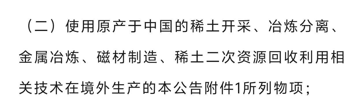 全都傻眼了,世界各大新闻媒体瞬间跟进,含有稀土成分的废弃物都在管控范围,BBC、路透社、金融时报,世界各大媒体争相跟进报道, 第一条的第一部分:含有、集成或者混有,所列物项的价值比例达到0.1%以以上的。 第一条的第二部分:稀土二次资源回收利用。 第四条:研发生产14纳米以下逻辑芯片或者256层及以上存储芯片。 波音飞机、苹果手机、台积电、英特尔、特斯拉、三星、阿斯麦等顶级科技前沿全都不会玩了,这些都不长心,相当于人被断水,简直无法生存,这些科技前沿以更新产品快闻名世界,这下全部低下高傲的头颅,全都停滞不前。不过他们也有解决办法,以后他们会拆下进口车,进口手机、进口电脑,进口马达,进口存盘,进口飞机,用在他们的产品上拼凑,而且是唯一一个地方进口的,因为其他地方的都不含有稀土。 就问问你们,还有谁不服?