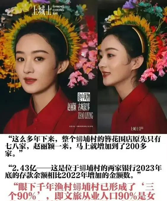 好消息,哇塞蟳埔村在自己标志性码头给赵丽颖簪花照立了一个大招牌啊!颖宝好显眼呀,看来蟳埔村很重视和喜爱颖宝这张簪花照封面啦!也是啦,颖宝这张簪花照封面被网友誉为“最具有商业价值”的杂志封面!颖宝簪花照封面曾经一举拉动泉州当地旅游经济,现在仍然在影响当地旅游经济发展! 哈哈哈我想说颖宝这张簪花照封面都快成为泉州旅游形象大使了!难怪网友说泉州就是一个巨大的赵丽颖“痛城”。夸张到基本上你在泉州走几步,就可以碰到一个簪花颖照片!我想颖宝这张簪花照拍得真值啊,既宣传了中国非遗文化之美,又影响当地旅游经济极大增长!颖宝当初选择拍簪花围这样的主题,也是为了宣传中国传统文化吧!嘿嘿嘿希望簪花颖的影响能一直长久下去!那颖宝我们下个活动见呀!