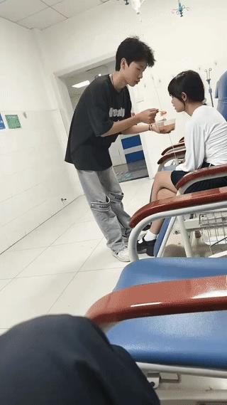一名网友生病后独自在医院里输液打点滴。 结果让他意外看到了这样的一幕? 在他隔壁不远处,坐着另一名年轻女孩也在输液。 女孩的男朋友寸步不离的照顾着她,中午吃饭的时候,还亲手喂女孩吃饭? 真是太让人羡慕了。#住院输液# #输液日常#