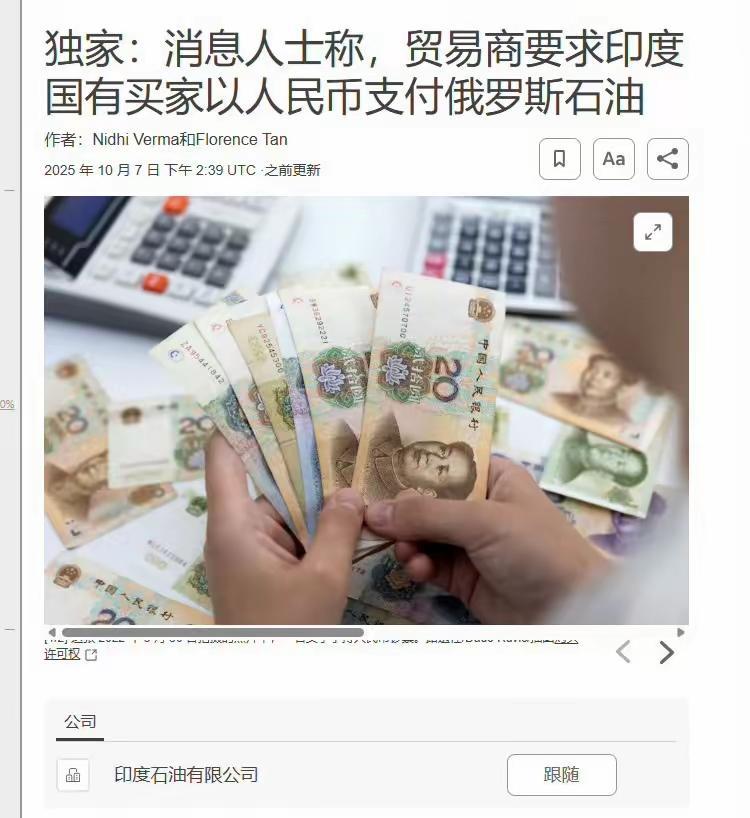 大毛要求阿三要拿人民币购买原油!大毛:卢布起码还有布,卢比只有傻比[捂脸]!大毛手中还拿着数万亿卢比,但啥也买不了,仅是一堆废纸。而阿三却把这些低价从大鹅买的原油转手卖给欧洲这个冤种大发其财! 大毛不收卢比,阿三这位“国际倒爷”印卢比换原油的好日子到头了!拿之前从欧洲赚的美元、欧元来买东大人民币吧!
