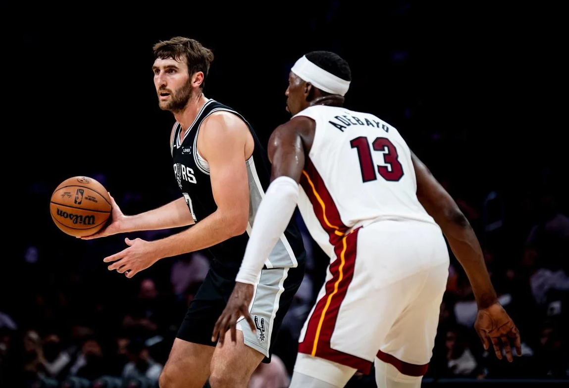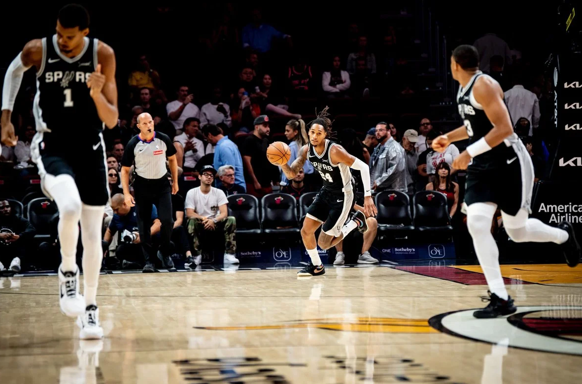 马刺以112-107击败热火。 赛后,马刺官方更新X,晒出一组球员们的赛场照与球