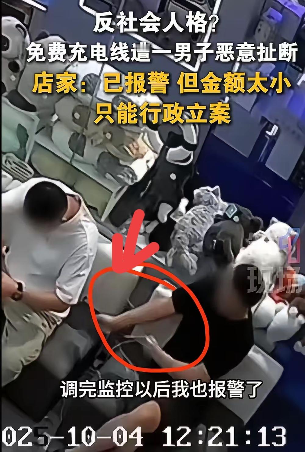 查完烟台手机店这事,我真是气笑了!本以为就是个充电小纠纷,没想到是妥妥的恶意搞破坏,这操作也太掉价了! 10月4号那两男两女,在人家店里免费充了半天电,连句谢谢都没有,临走前还特意瞅准没人,把两根数据线全扯断了。监控拍得明明白白,他们充电时还故意转悠观察,就是奔着“搞事”来的,哪有半点成年人的分寸? 店主好心开放免费充电,图的是份邻里情分,结果反倒成了“软柿子”?享受着别人的善意,转头就用破坏当回报,这哪是占便宜,分明是把“没教养”刻在了脸上。这种人消耗的不是两根数据线,是商家敢对陌生人释放善意的底气。 你说,要是遇到这种“蹭完便宜还使坏”的人,除了曝光,还能咋让他们明白“善意不是理所当然”?