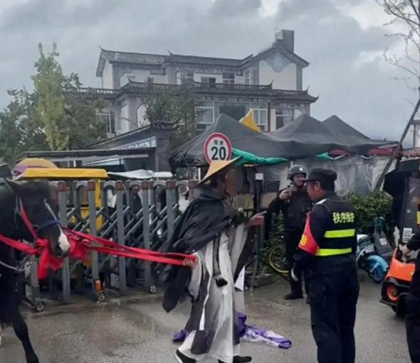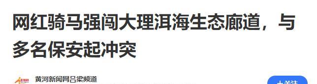 “吃饱撑的!”10月7日,云南大理,一男子身穿古代“大侠”服装,骑着一匹马来到当地景区,要骑马穿过这片景区,而保安为了景区里其他游客的安全着想,拒绝了男子的要求,谁知男子竟打算硬闯,还倒打一耙声称保安打了他的马?网友:这简直是想红想疯了。 如今很多人为了拍视频获取流量,加上满足自己环游世界的梦想,就开始拿着一个手机上路,既不想出钱旅游,指望网友们众筹或者刷礼物,甚至还不遵守当地的规矩,这种人实在太令人气愤! 据不少游客拍下的视频显示,这位男子身穿一身古代的服饰,看起来就如同一个大侠一般,同时又骑着一匹高大的马匹,他就打算这样闯进景区里,拍下自己骑马的视频涨粉。 可景区的保安却拦下了他,一方面景区里面有规矩,所有机动车辆包括马匹都是禁止入内的,毕竟机动车车速快,撞到人可就酿出事故了。 而马匹在景区里的不确定性也是很大的,很多景区虽然本来就有马,但那都是经过驯化的,出了事情景区也会负责,可像这种游客带进去的马,如果突然受惊撞伤了人,到底应该由谁来赔偿? 起初景区的保安已经很客气的让他不要骑马进入了,可没想到男子却不依不饶,甚至还打算骑着马硬闯,不知道究竟是谁给他的勇气! 保安为了不让他闯进去,手持盾牌和工具进行阻拦,期间保安打了马的头部一下,接着男子就开始煞有介事的说别人打他的马,对于自己的违规行为却丝毫不提,甚至马还不小心咬伤了保安的手! 像这种旅游的视频博主拍视频是完全可以的,但是起码要遵守规矩,也不要为了红什么都做,本来很多地方就是不允许骑马的,否则马路上岂不是乱了套了! 信息来源:《网红骑马强闯大理洱海生态廊道,与多名保安起冲突》黄河新闻网
