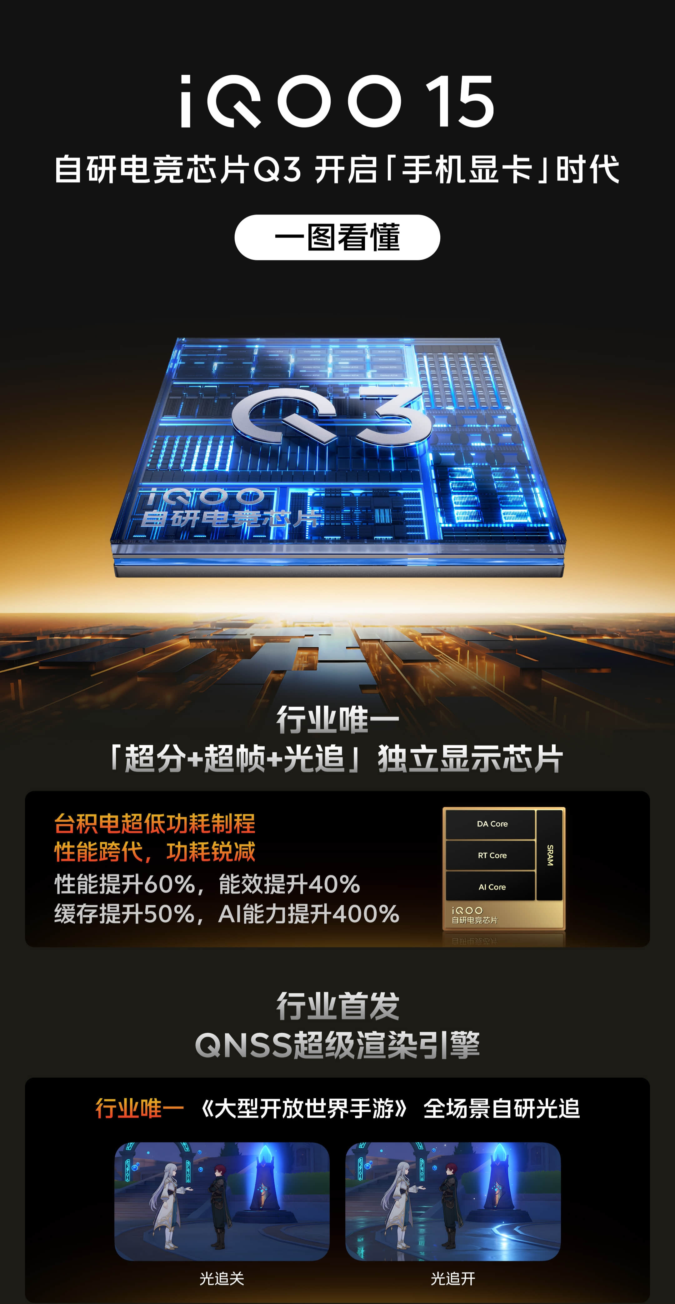 盼望着盼望着,终于盼到了iQOO 15发布会的官宣:定档10月20日,发布即开售。这次iQOO 15的爆料信息大家看的也不少了,不管是它独特新颖的外观设计和四大亮眼配色,还是第五代骁龙8至尊版+Monster超核引擎+自研电竞芯片Q3带来的最强游戏体验,以及全球首发2K LEAD OLED显示技术+M14发光材料的2K三星珠峰屏,还有IP68+IP69防水、全新一代超声波3D指纹和无线充电的周边配置,都令人一次比一次更惊喜,期待程度也是越来越高涨。可以确认的是,iQOO 15这次是妥妥的跨代领先了,你理想的下一代,就是这一代!