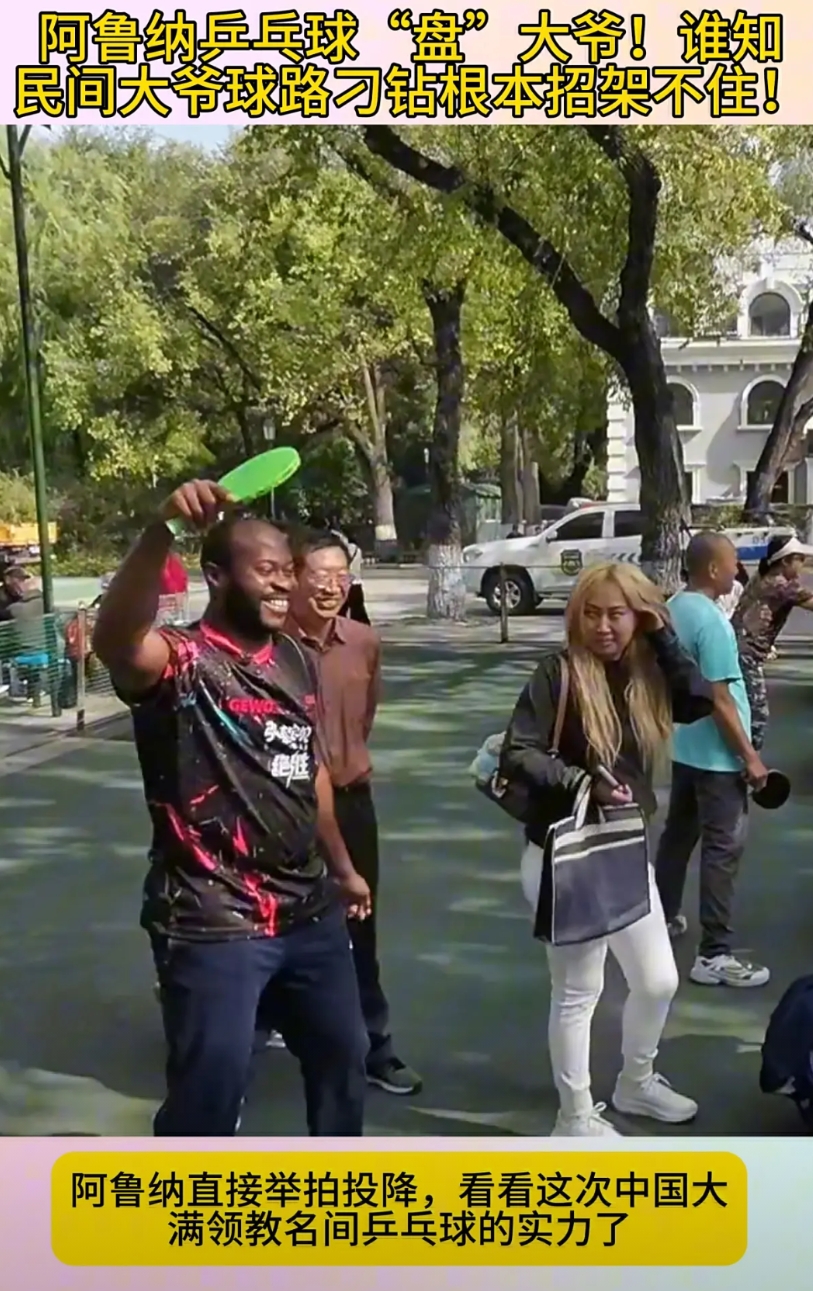 感觉阿鲁纳已经完全离不开中国了,不但找了个中国教练王开,打完比赛也不急着离开,跟着王开挑战公园大爷了!