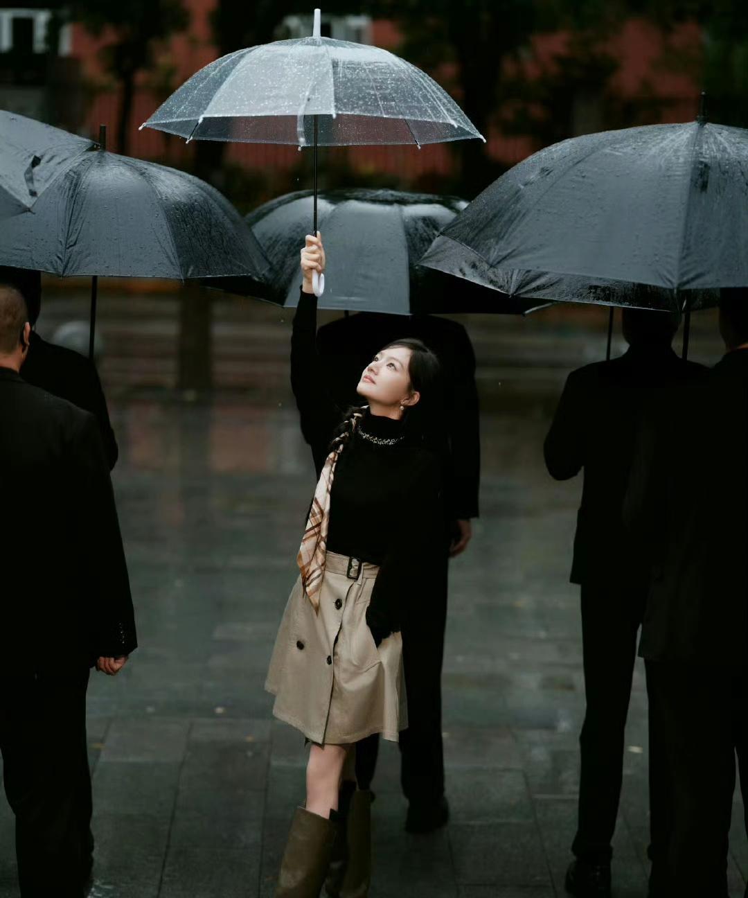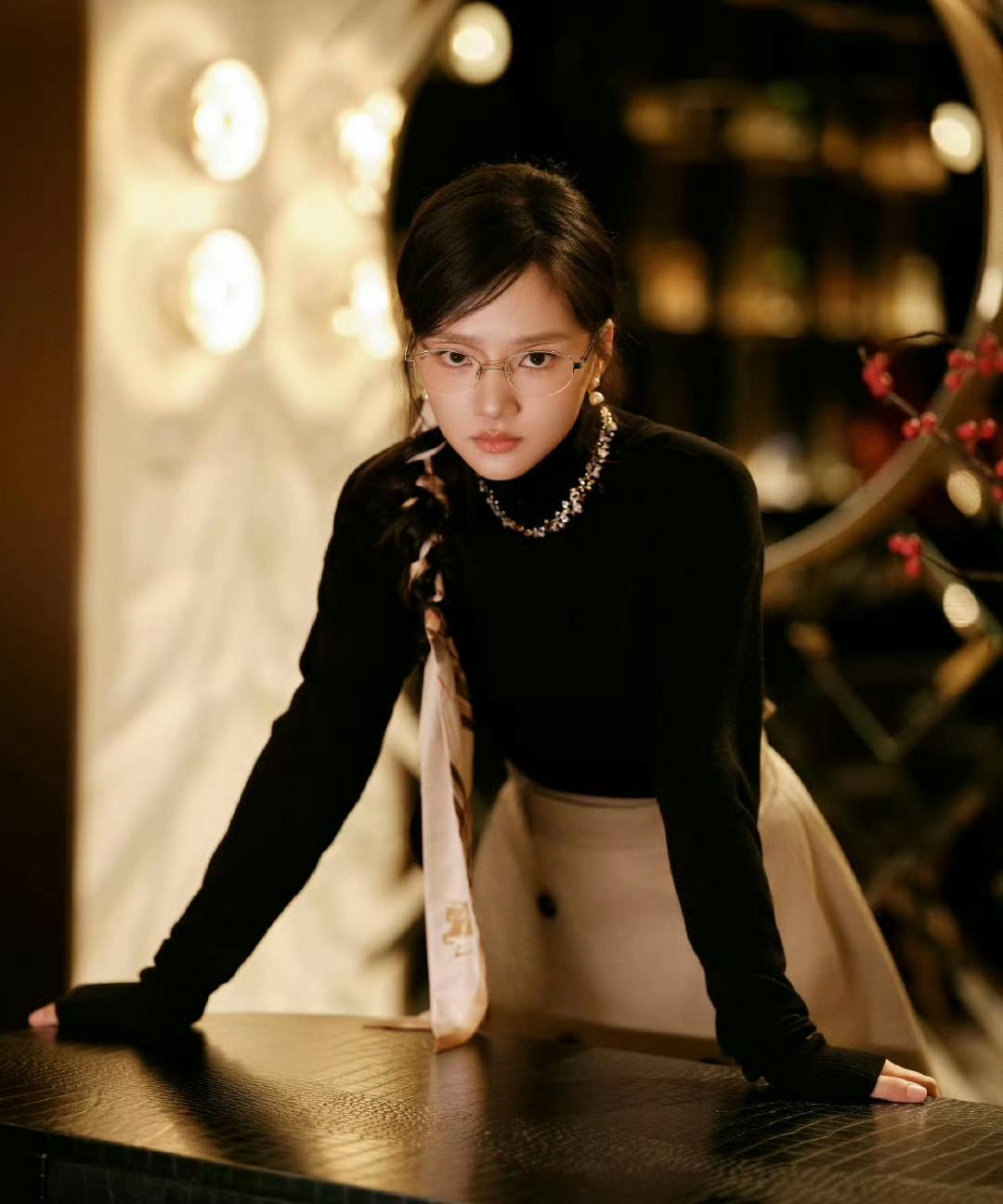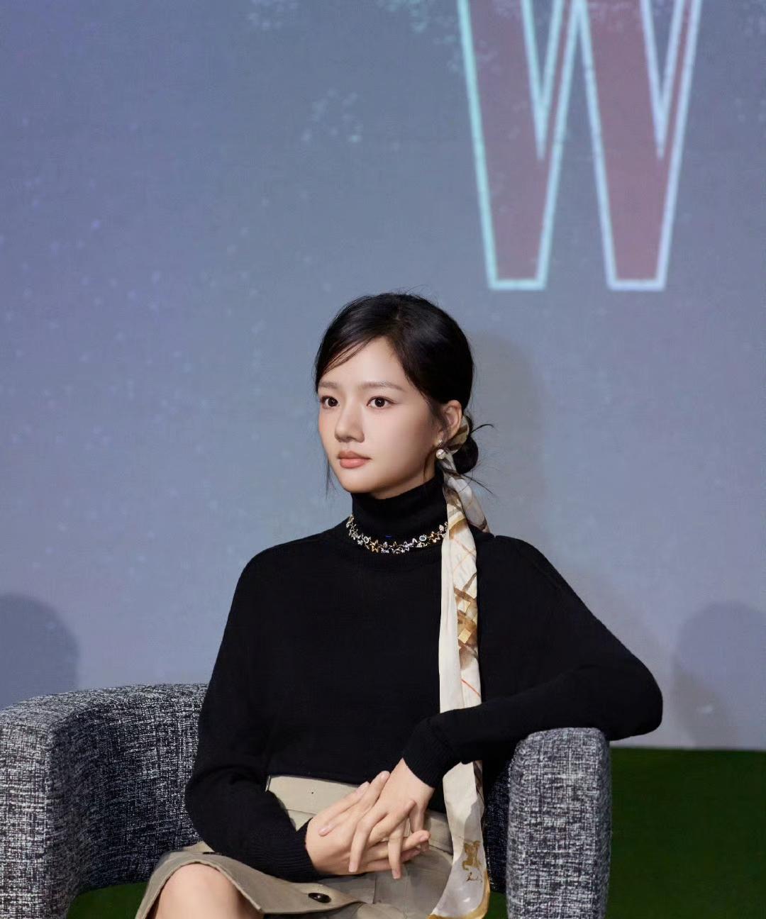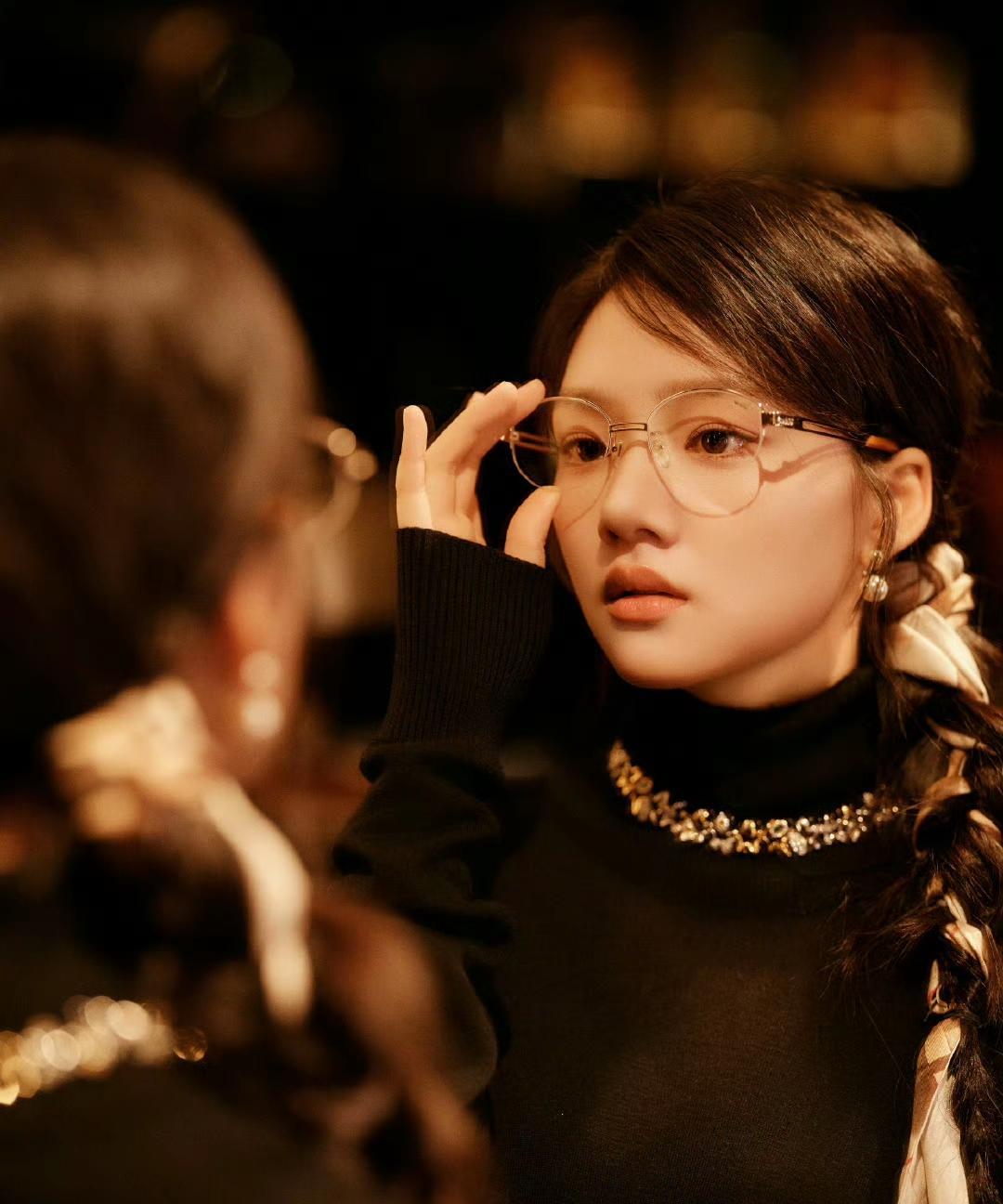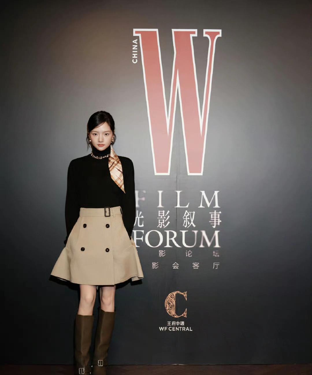 任敏今天参加W光影叙事电影论坛全套Burberry25秋冬系列,金丝框眼镜和发带
