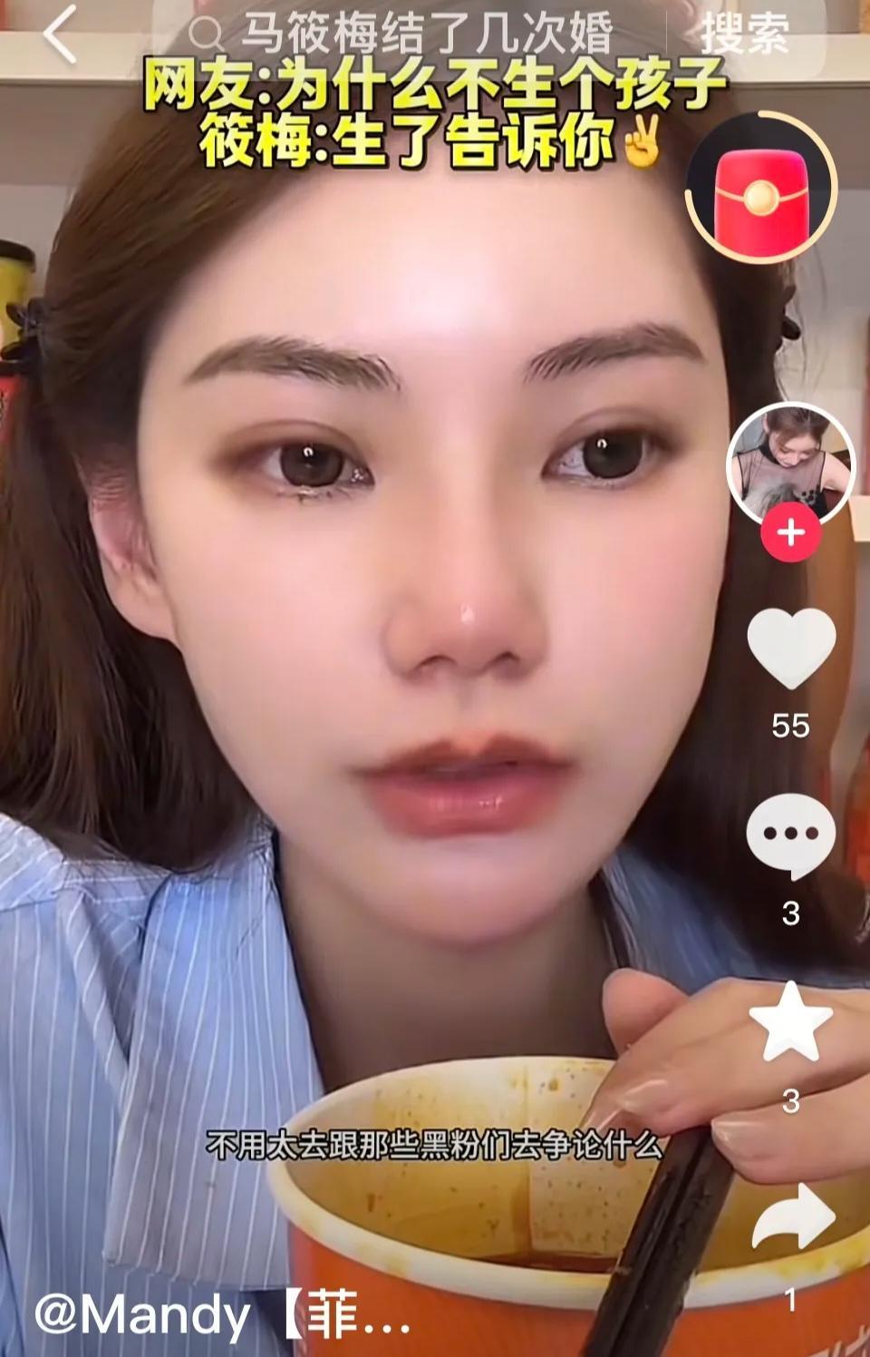 小梅特别旺夫啊,她直播的特点就是温温柔柔、慢条斯理的介绍麻六记的产品。她边吃着酸辣粉一边推荐着,告知粉丝宝宝这次酸辣粉的活动力度很大哦,欢迎大家积极下单抢购吧! 结果酸辣粉卖断货了,小梅特别开心。马上就有小黑粉捣乱,小黑粉刷屏:你还笑的出来,你是怀了个哪吒吗?还不生吗?到底能不能生? 小梅依然不被影响情绪,她平静的说:不用跟小黑宝宝去争论什么?没有必要的,这样的人生活中一定过的不太好。生了会告知的,你到时候是要送红包吗? 小梅是聪明的,对付黑粉就要云淡风轻,小黑粉就是想激怒小梅,目的没有达到只会自讨没趣,时间长了小黑粉感觉没有意思也就会消失了。