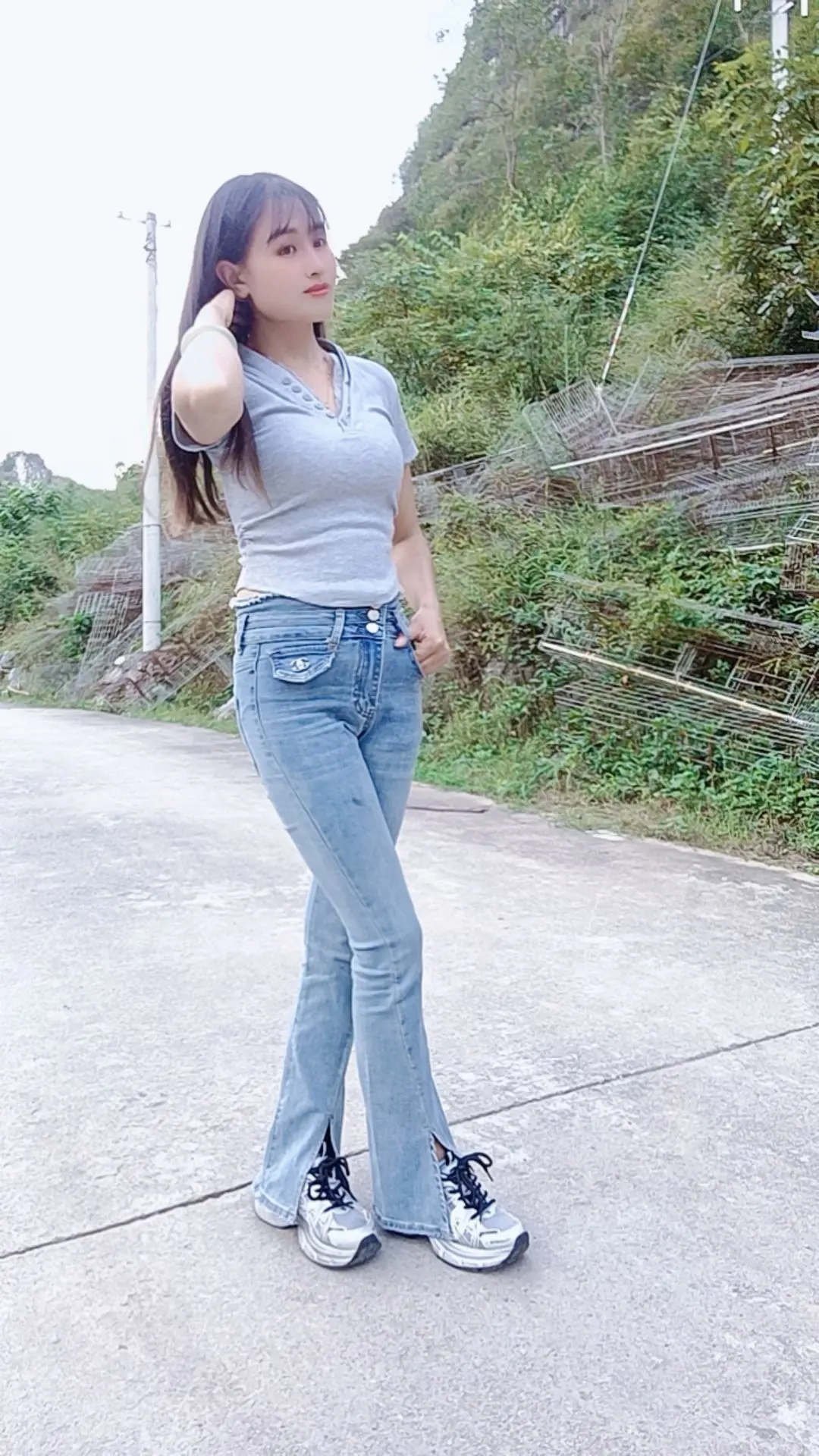 牛仔裤穿搭 长发及腰的小姐姐 长发飘飘的小姐姐