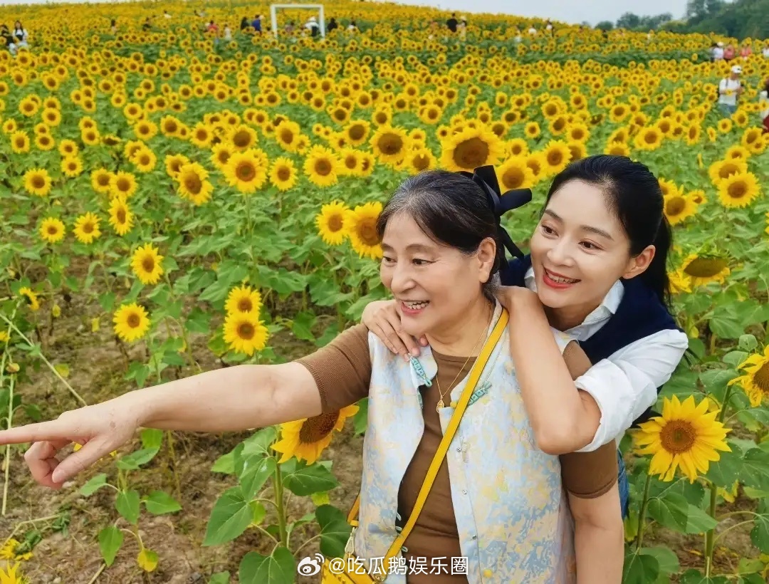 王媛可中秋带家人看向日葵,双胞胎儿子又胖又高,父母出镜好年轻!