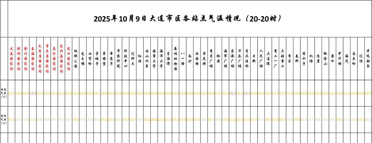 #大连天气# #大连生活#【大连明日10.10天气展望——降雨持续,气温略有回升】 实况: 晚间20:20市区天气雨,气温12.3度,相对湿度97%,吹偏北风,目前大连地区空气质量优异。 展望: 今天夜间到明天白天北部地区中雨,南部地区中到大雨,偏北风4到5级,今夜明晨最低气温12度附近,明天白天最高气温15度附近, 明天夜间到后天中午中雨,后天下午阴转多云,偏北风4到5级,气温在12~16度之间。 今夜到明天白天降雨继续,依旧是稳定降雨为主,或有短暂间歇期,南部地区中到大雨,北部地区中雨,气温略回升。 今日天气回顾及未来天气展望: 今天降雨持续一天,有短暂间歇期,气温继续回落,今天白天的最高气温13.0度。 明天降雨持续,降雨以稳定降雨为主,可能有短暂的间歇。后天中午前后本轮降雨结束,明后天气温有所回升。周日下周一可能还有阵雨,变数较大,临近关注。下周二之后天空放晴,气温回升。最后提示一点3天以上的预报准确性低,建议大家关注临近的预报信息。