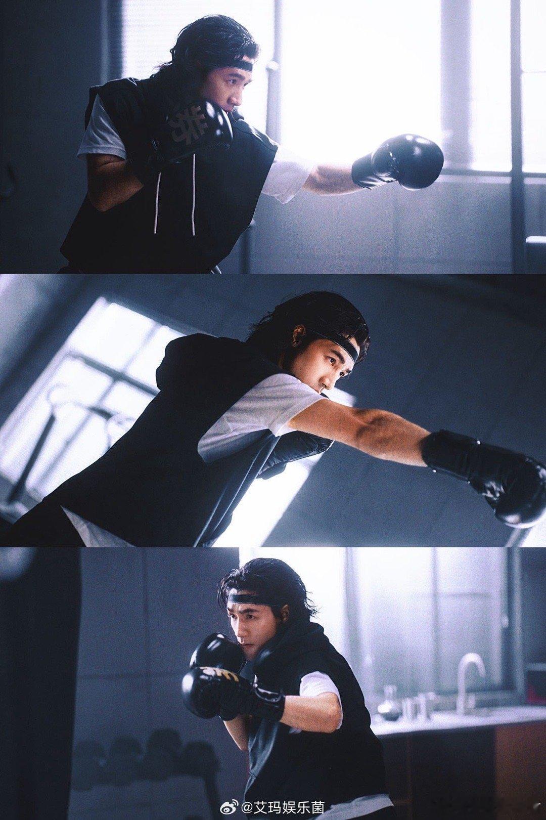 此沙黑皮发带体育生 此沙化身黑皮发带体育生,打拳击时眼神锐利,动作标准有力,发带与黑皮的搭配清爽又有范儿,让人一眼沦陷。 ​​​