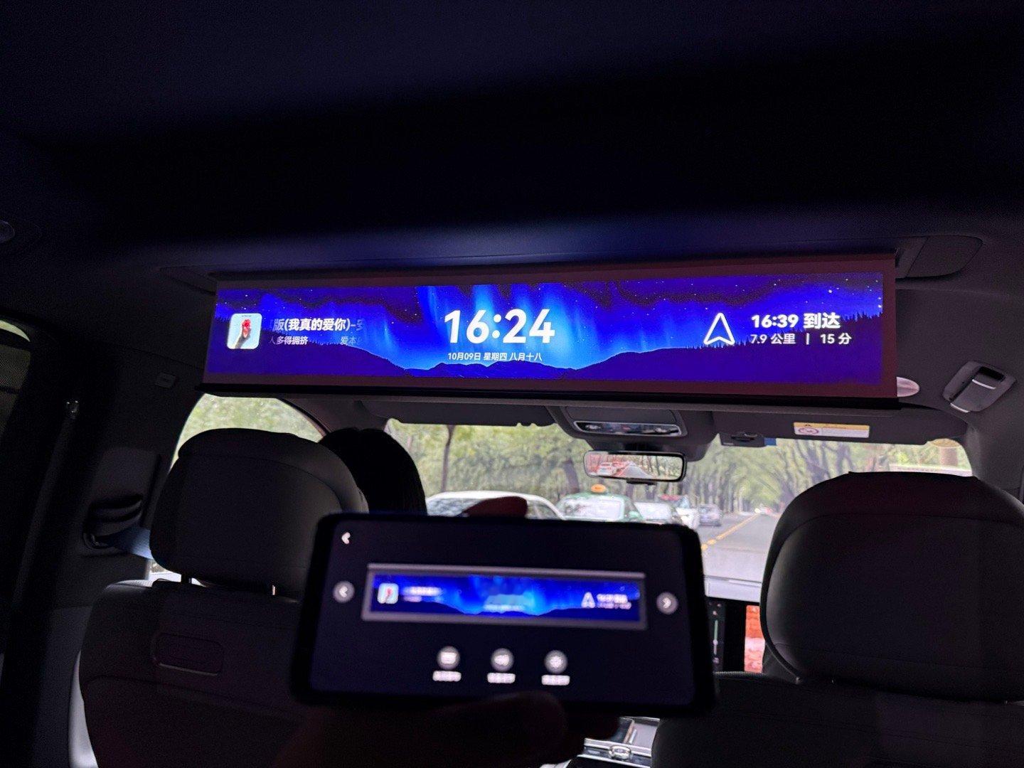 问界M9后排屏幕悬浮模式,我第一次用。刚发现还有三种显示模式,可以显示歌词、时间、导航等信息。