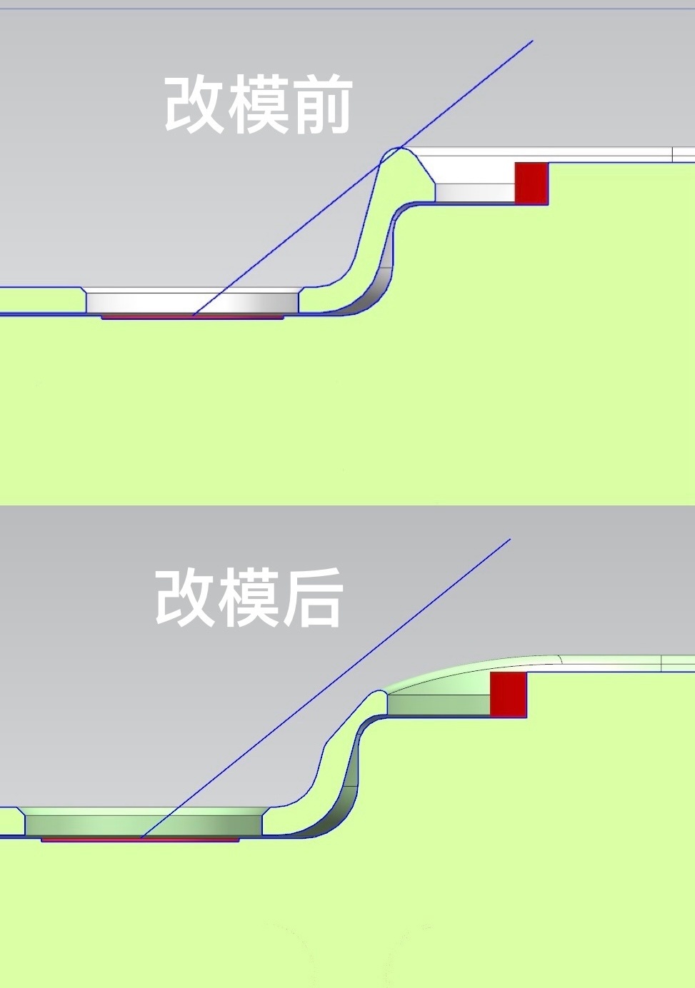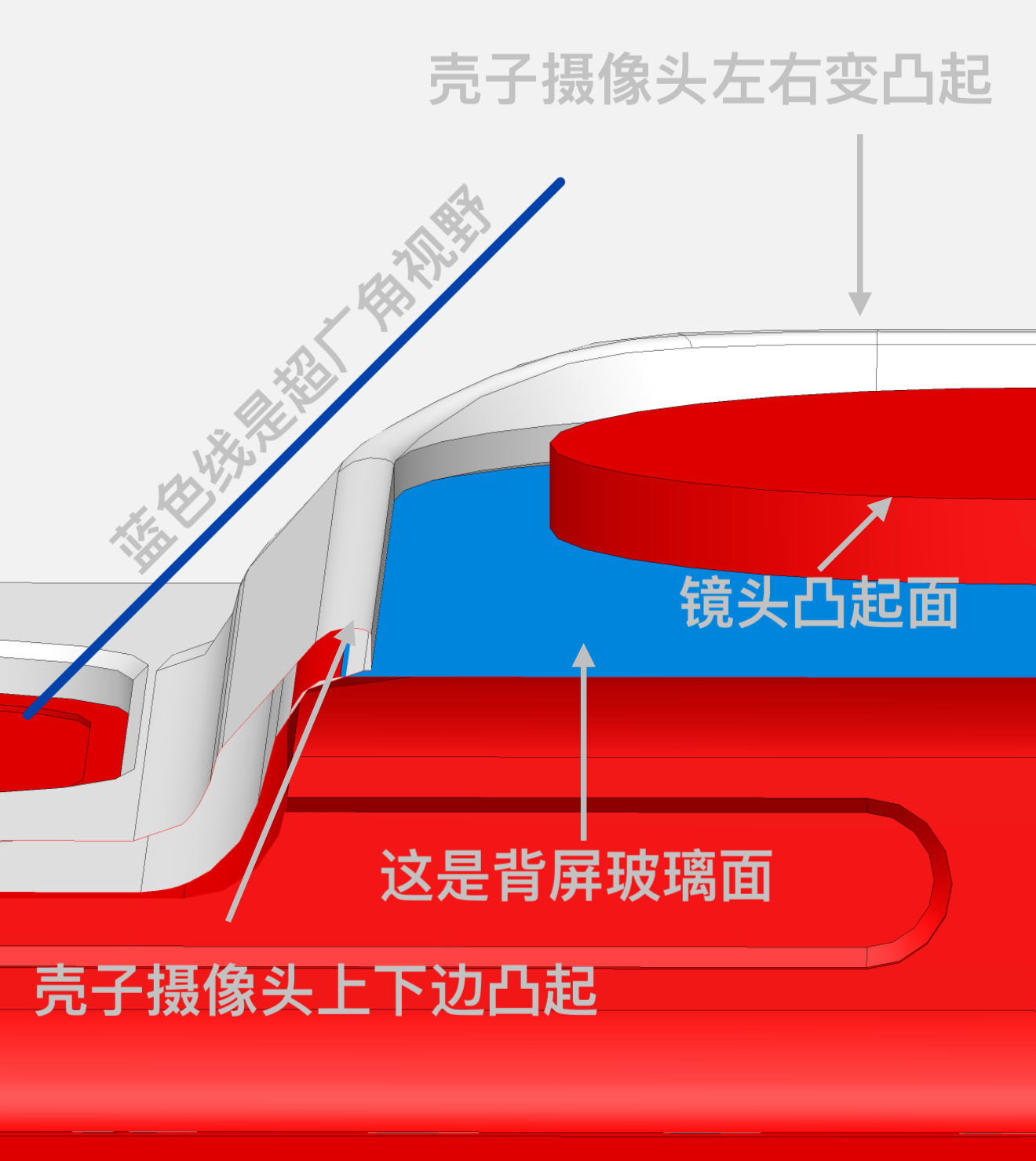 大家看图二,改模前就是摄像头凸起的那一点点挡到了超广角视野,改模后视野开阔毫无影响。