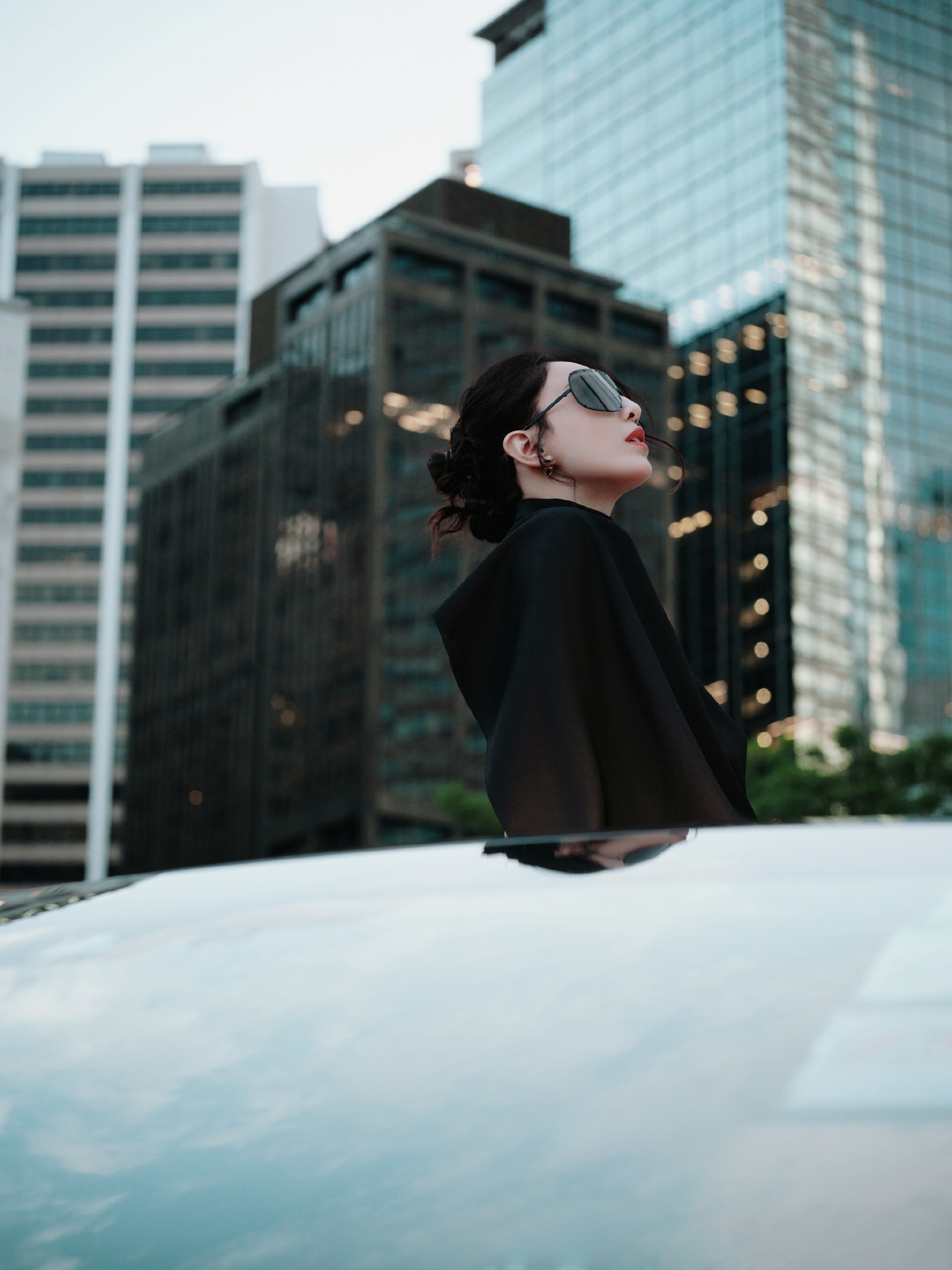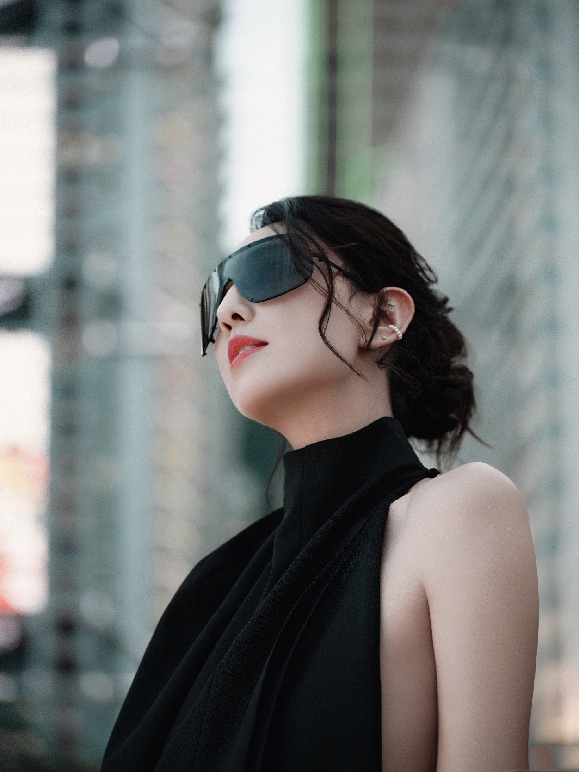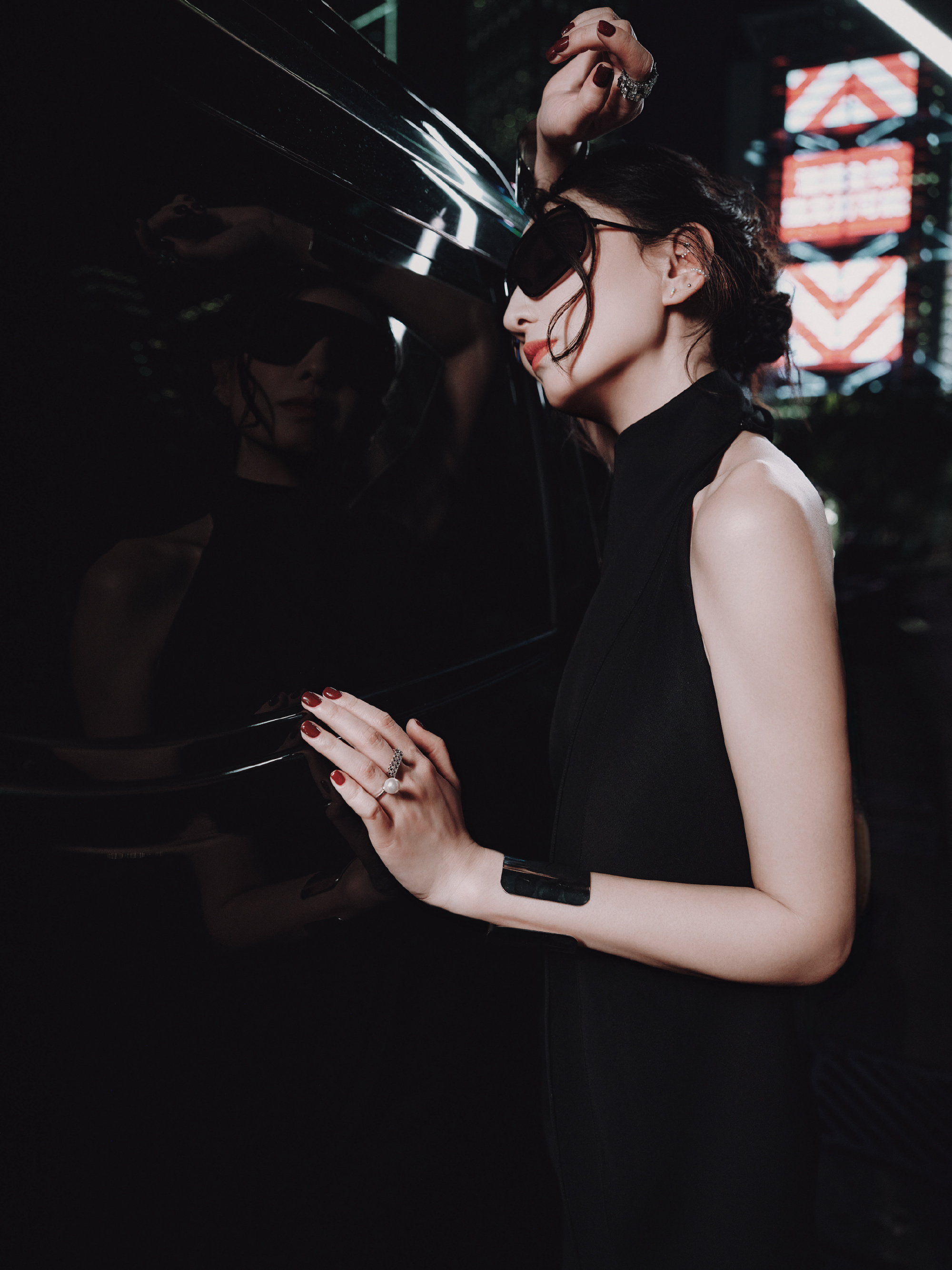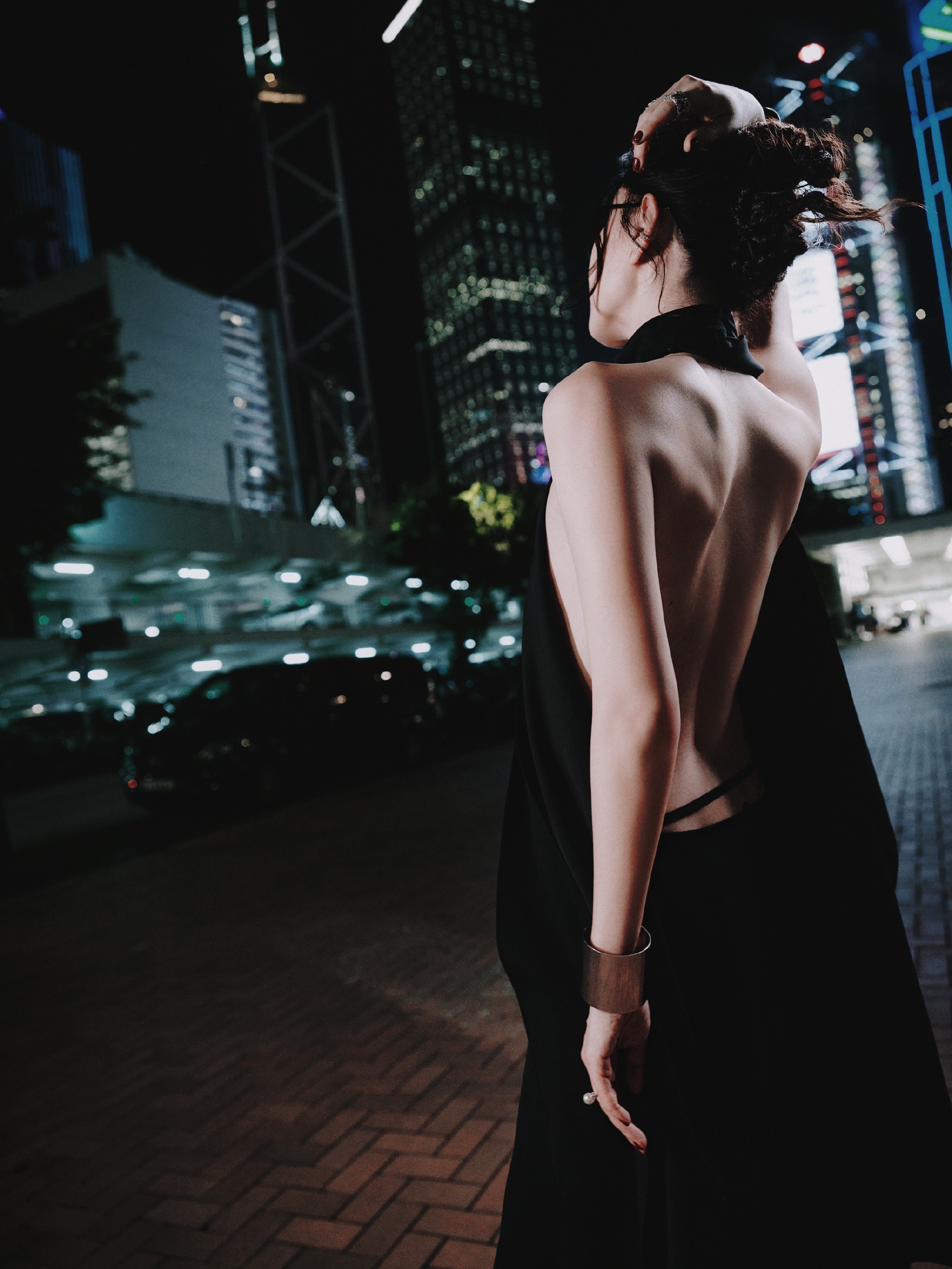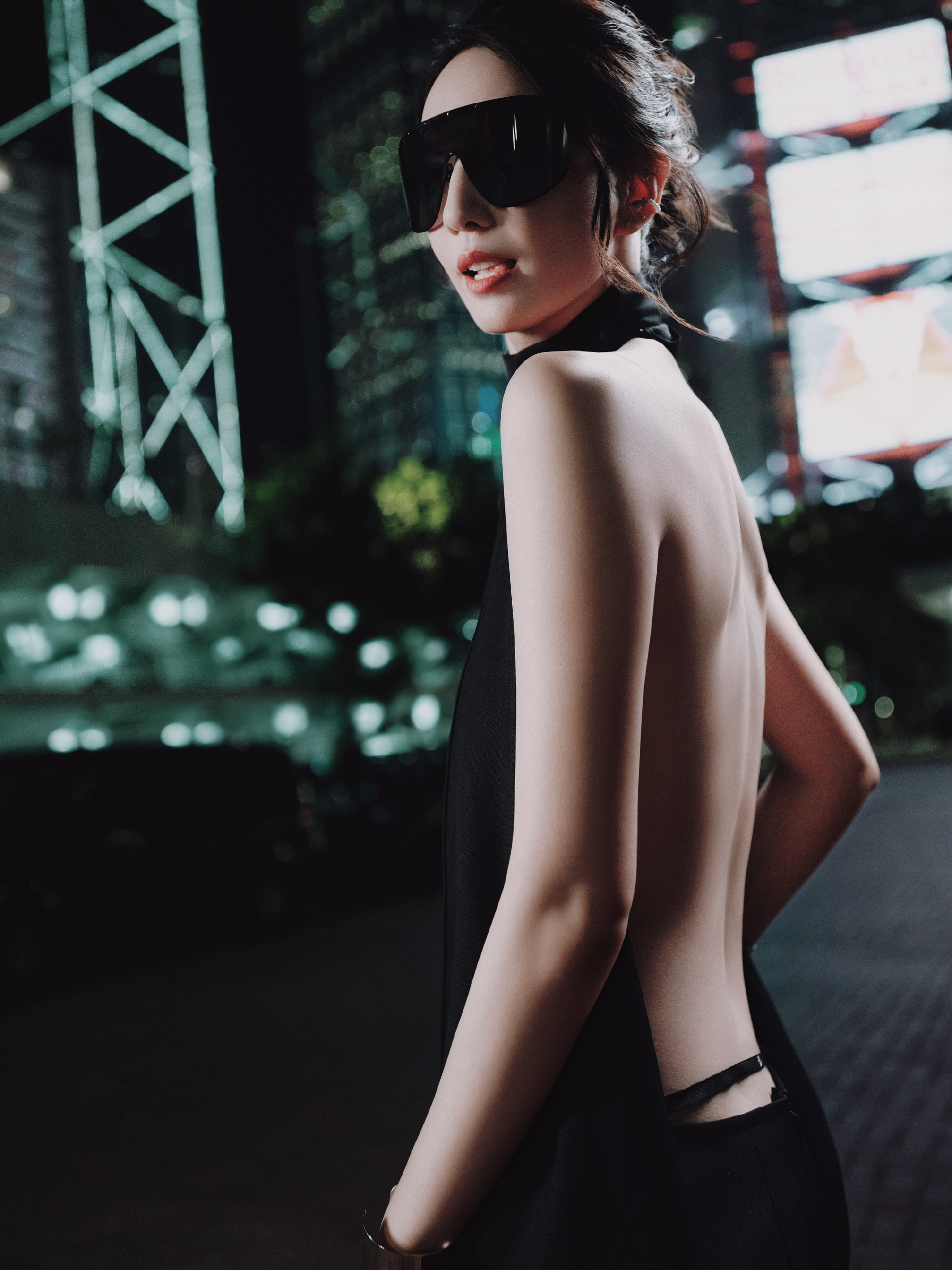 郑希怡暗黑风酷感穿搭,这背太美了吧