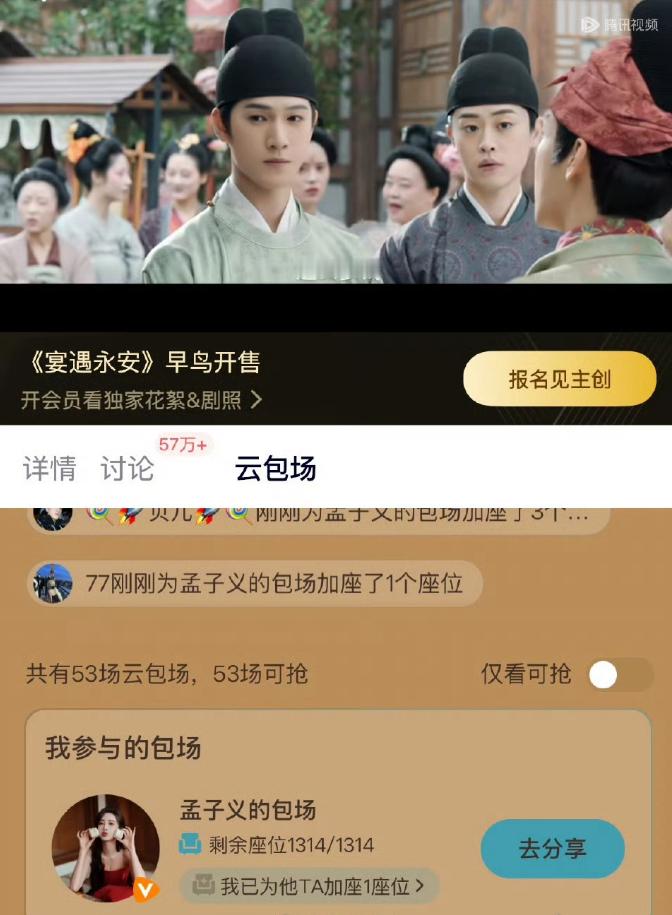 孟子义选择为李昀锐主演的《宴遇永安》进行云包场,为这部新剧的传播提供支持。这样的行动,让剧集在观众群体中获得更高曝光。孟子义给李昀锐新剧云包场孟子义给李昀锐宴遇永安云包场1300座