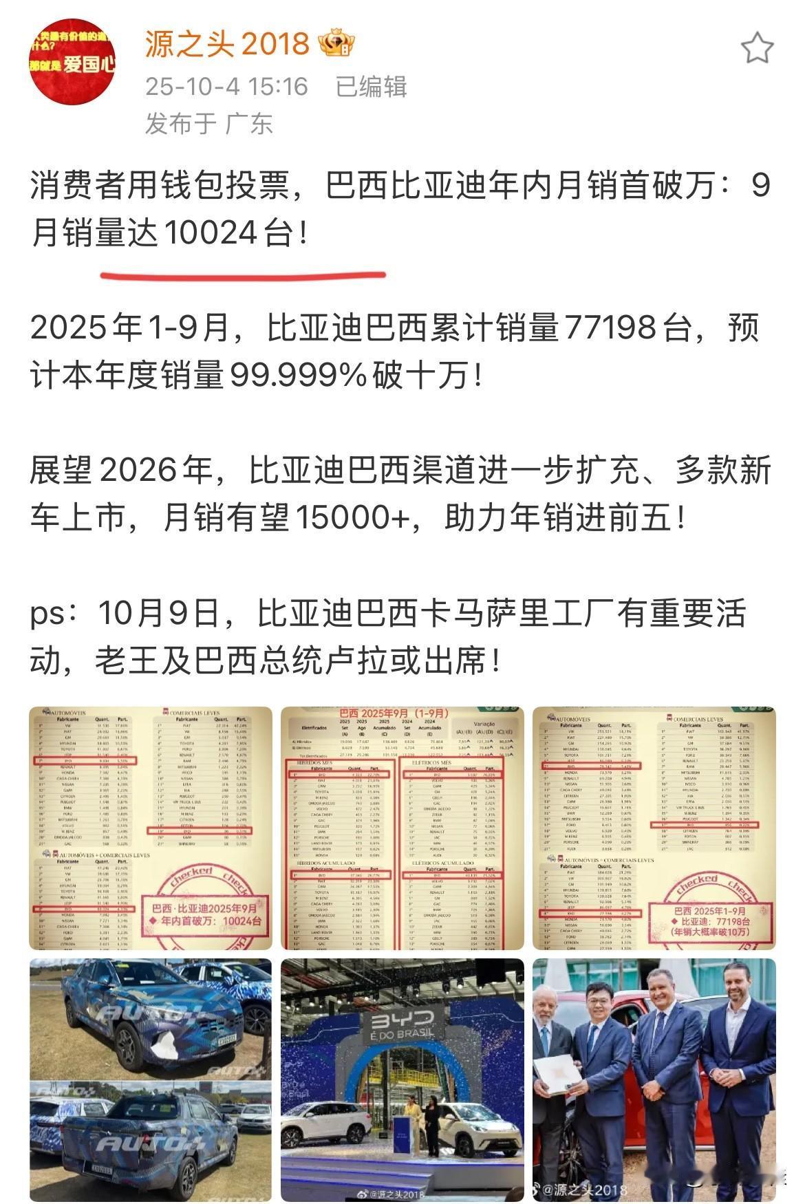 喷子们又要失眠了! 来自源之头消息,比亚迪9月国外销量,比亚迪在欧洲-英国月销量首次突破万台了,达到11271台,比亚迪宋Plus单车型斩获销量5373台,成功跻身英国新能源车市场销量榜2! 除英国外,位于南美洲的巴西9月也迎来了首次突破万台大关(10024台)!之前是谁说,在欧洲就算进去了,也卖不掉的?