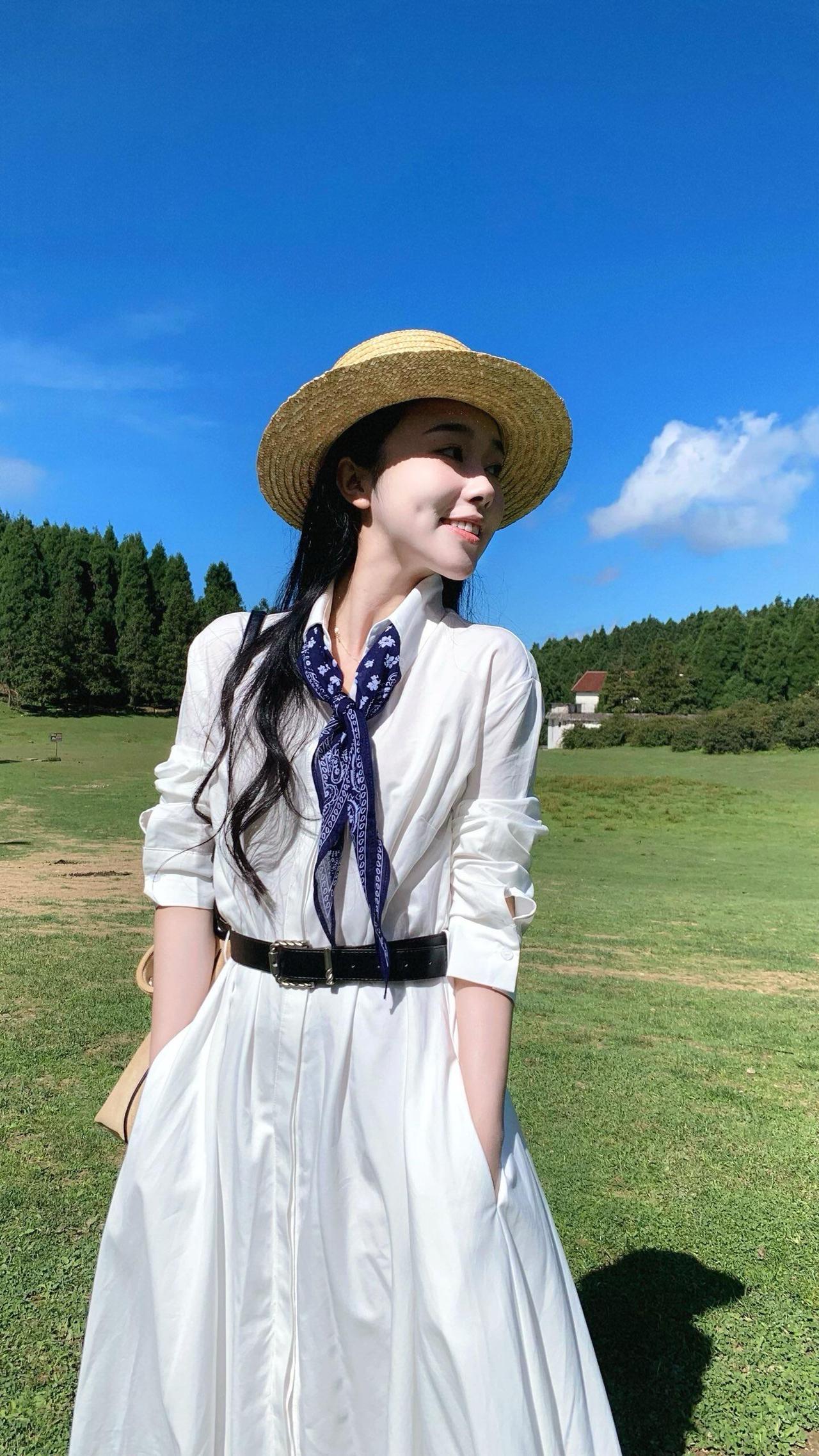 夏日田园风穿搭草帽+长裙清新自然纯情又温柔穿搭