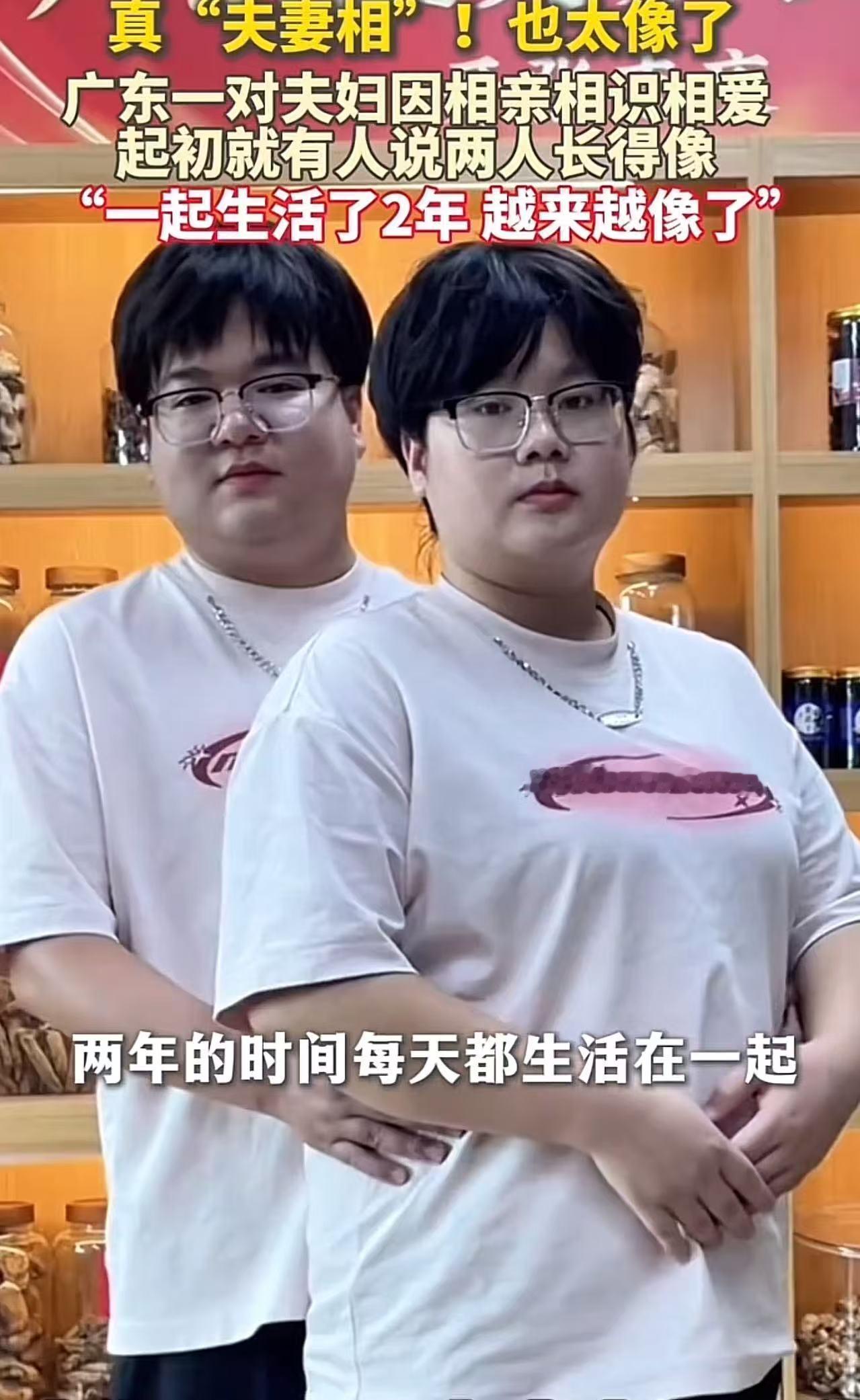 “笑不活了!”10月6日报道,广东一女子称很多人说自己和老公长得像,于是拍视频让网友看像不像,网友:“这哪是像,简直就是双胞胎!要不你俩去做个鉴定吧看是不是失散多年的兄妹!”[玫瑰] 广东茂名有对年轻夫妻最近发现了件有意思的事,梁彩玉(化名)和何仙胜(化名)结婚三年,翻出婚礼照片对比现在的合影,发现两人的五官轮廓越来越接近了,尤其是笑起来的时候,眉眼弯弯的弧度几乎一模一样。 每次出门都得耐着性子跟人家解释半天:“不是兄妹,是两口子!” 女子心里就纳闷了,自己照镜子的时候,也没觉得和老公有那么像啊,怎么大家伙儿都这么说呢? 梁彩玉说刚谈恋爱那会儿,朋友们就开玩笑说他俩有点像兄妹,当时她还不以为然,觉得只是发型和穿衣风格比较接近,但三年过去她自己都注意到了变化。 何仙胜拿出手机里存的早期照片,那是两人刚确定关系时在游乐园拍的,照片里梁彩玉扎着马尾,何仙胜留着短发,虽然都笑得很开心,但仔细看当时的面部特征差异还是挺明显的。 再看现在的照片两人不仅发型越来越统一,连表情管理都出奇地一致,皱眉的时候额头上的纹路位置差不多,大笑的时候眼角的鱼尾纹也对称分布。 广东夫妇因为长得太像而火上了热搜这段视频迅速引发了广大网友的热烈讨论: “这怕是失散多年的兄妹吧?” “这就是夫妻相,只要夫妻和睦,心往一块使,就会有夫妻相,古话说相由心生,如果经常闹矛盾经常吵架,面和心不和,就没有夫妻相。” “夫妻相,家庭和睦的象征,为主人公夫妻点赞。” “要不你俩去做个亲子鉴定吧!”。 “这才是夫妻相的天花板!” “这哪是像,简直就是双胞胎!要不你俩去做个鉴定吧,看是不是失散多年的兄妹!” “月老牵线的时候,怕是连长相都一起配齐了。” “原来单身是因为找不到和我像的人?” “夫妻两个太像了,你们真是天生的一对,祝你们幸福!” “看来我单身的原因找到了,是因为世界上缺少一个和我长得像的人!” “以后相亲别问条件了,先拿镜子照照对方像不像自己。” “夫妻长得像,是爱到深处的表现。” “感情好的夫妻经常接吻,会交换体内菌群,久而久之就会越来越像。” “夫妻相”不仅仅是长相接近 其实,“夫妻相”的背后,是两个人从内到外的高度契合。” 你是不是也下意识地看了看身边的另一半,或者翻出了自己的结婚照对比了一下?你和你的另一半有“夫妻相”吗? 快来评论区分享你的故事和看法吧! 信息来源:西瓜视频
