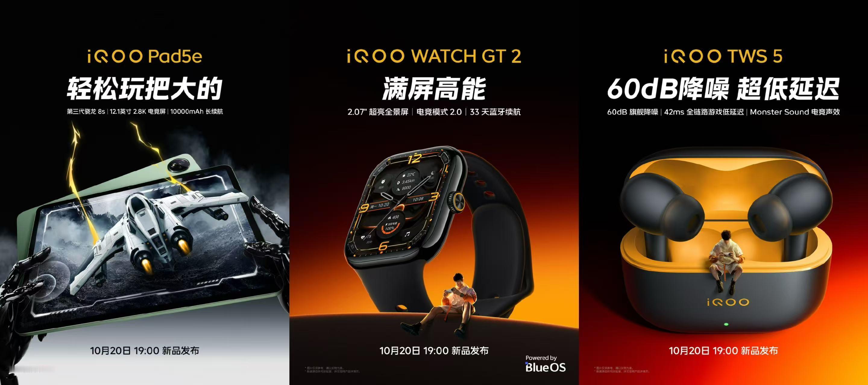 iQOO 这次还有全家桶新品齐上阵,除了iQOO 15 之外,iQOO Pad5e、iQOO WATCH GT 2、iQOO TWS 5也将与一同发布!可以先预约福袋领个福利,发布会完即开售,大家可以期待一下~
