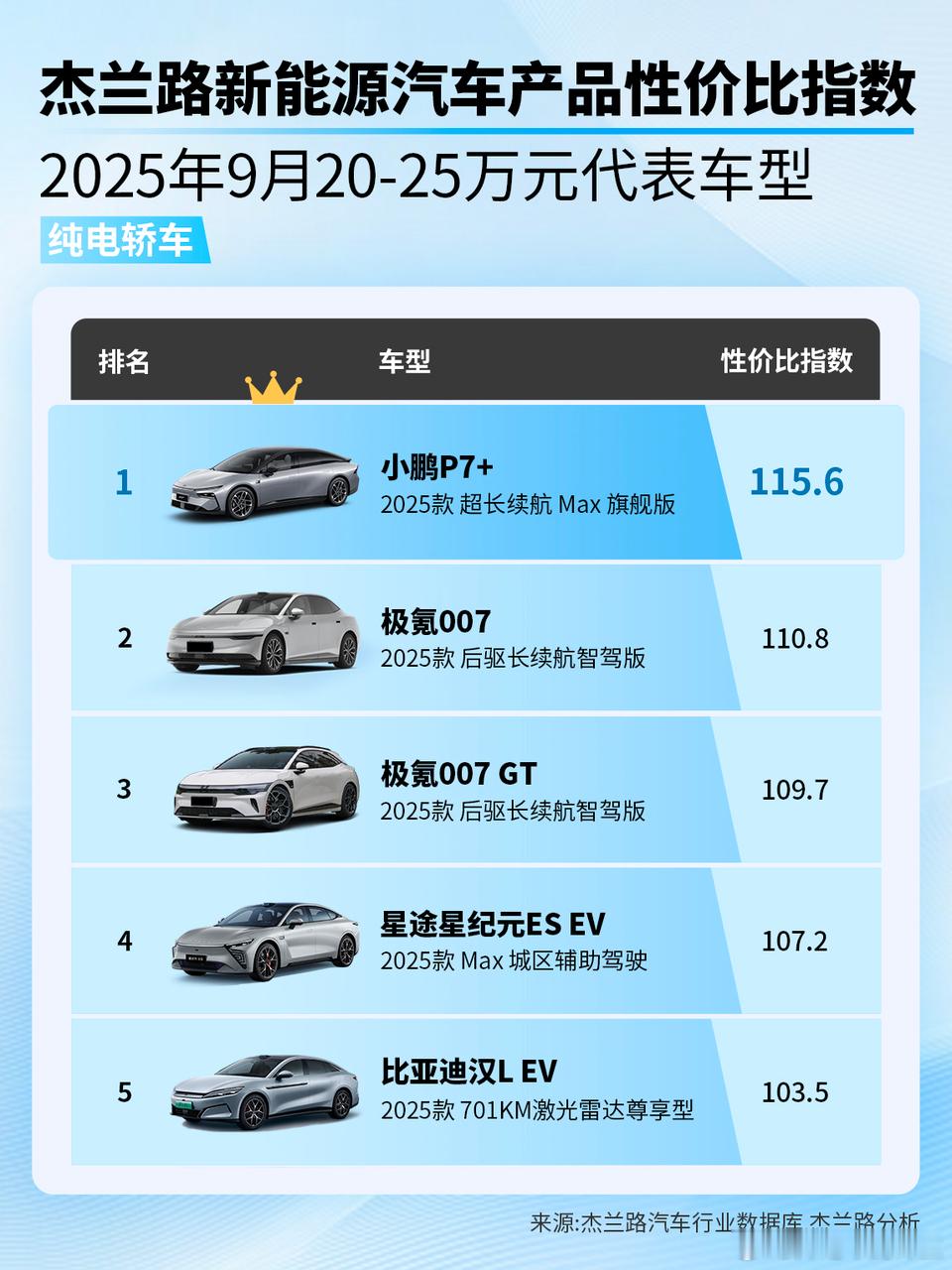 在杰兰路最新发布的新能源汽车性价比指数中,小鹏P7+更斩获性价比冠军,收获众多年轻家庭用户青睐。