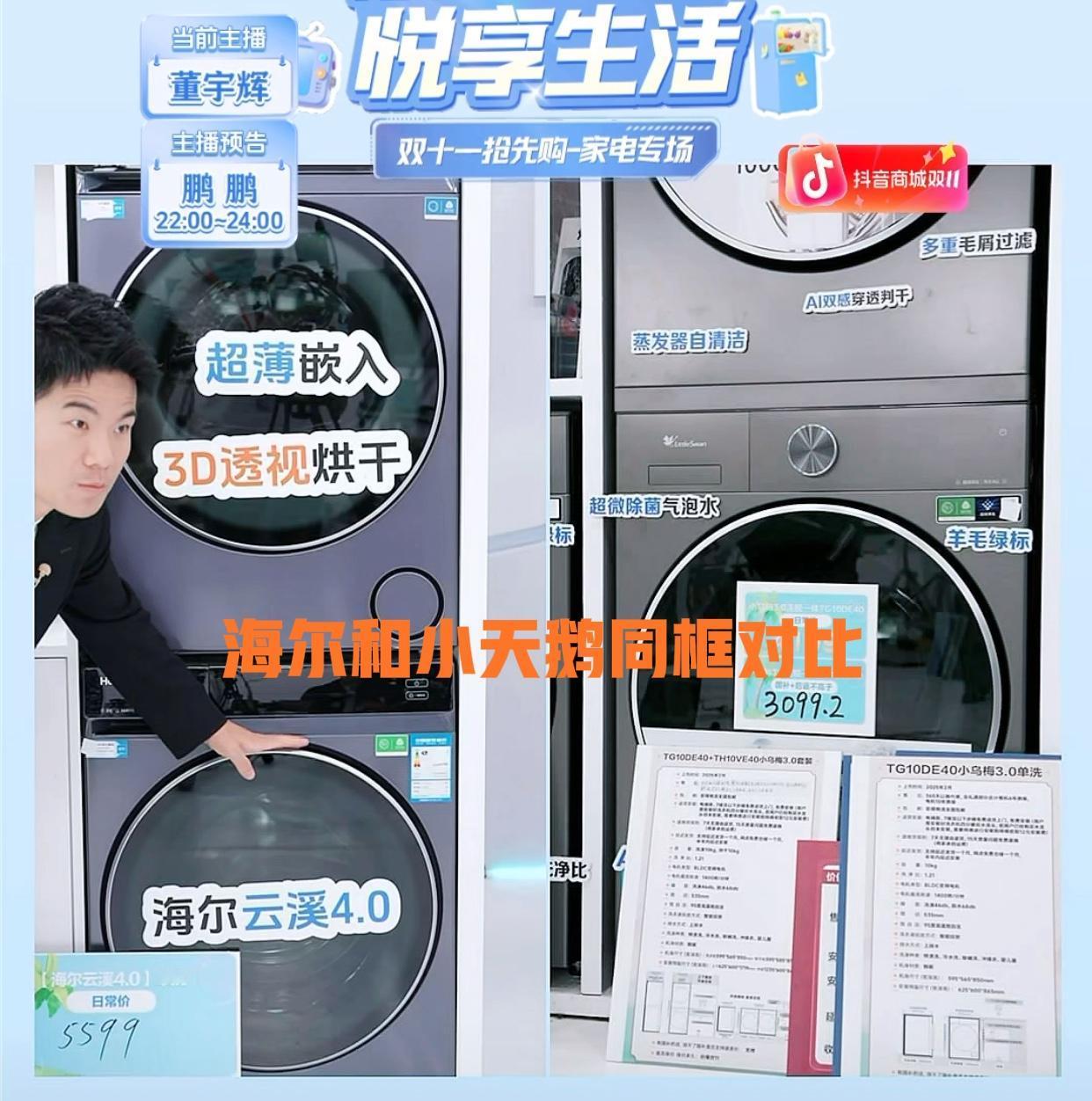 董宇辉真是语言艺术家 今天介绍海尔和小天鹅的洗衣机 他说鉴于两家品牌方都在,就不