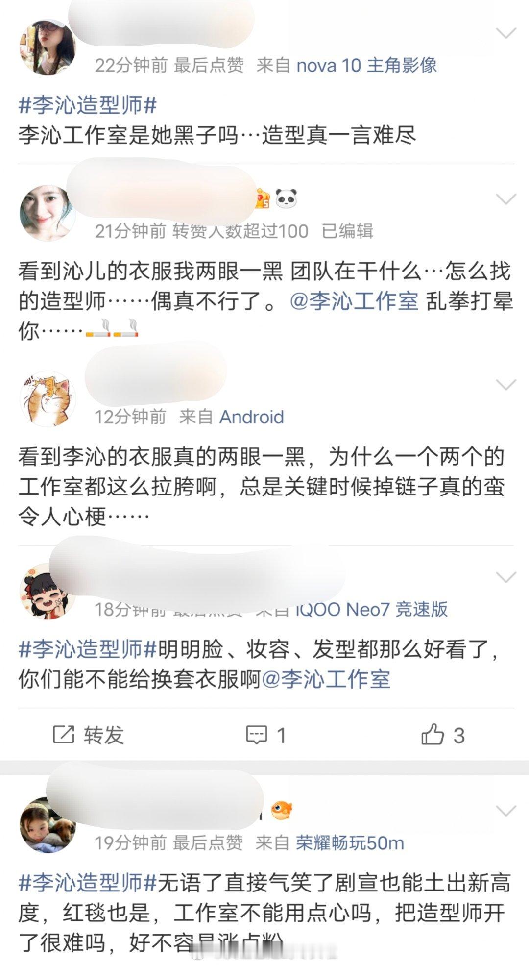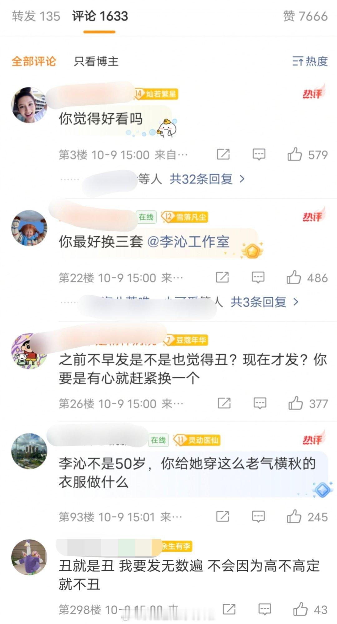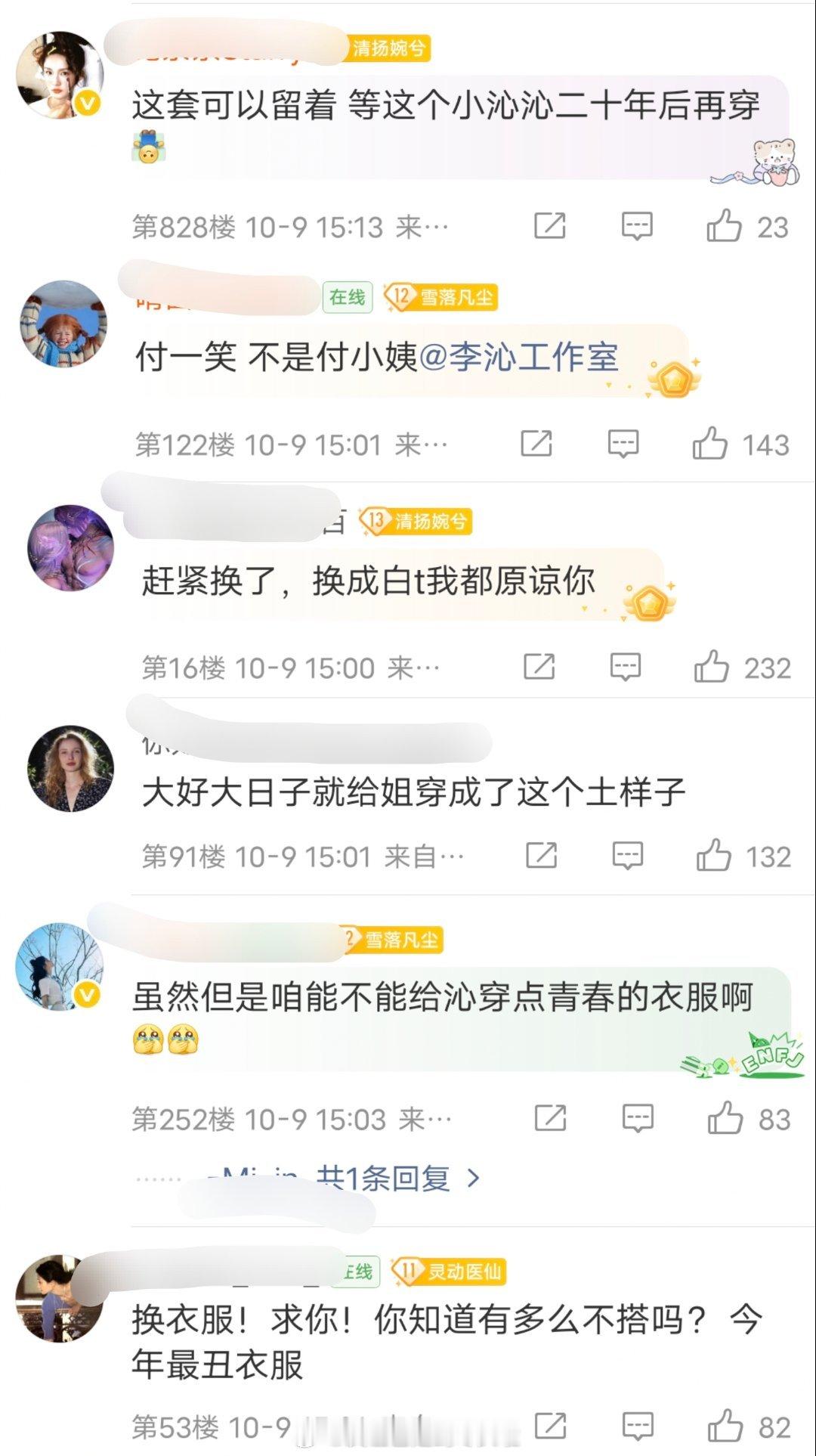 工作室评论区,粉丝都在吐槽为什么给李沁穿这么老气横秋的裙子,她是付一笑不是付小姨,这套等她二十年后穿都绰绰有余。