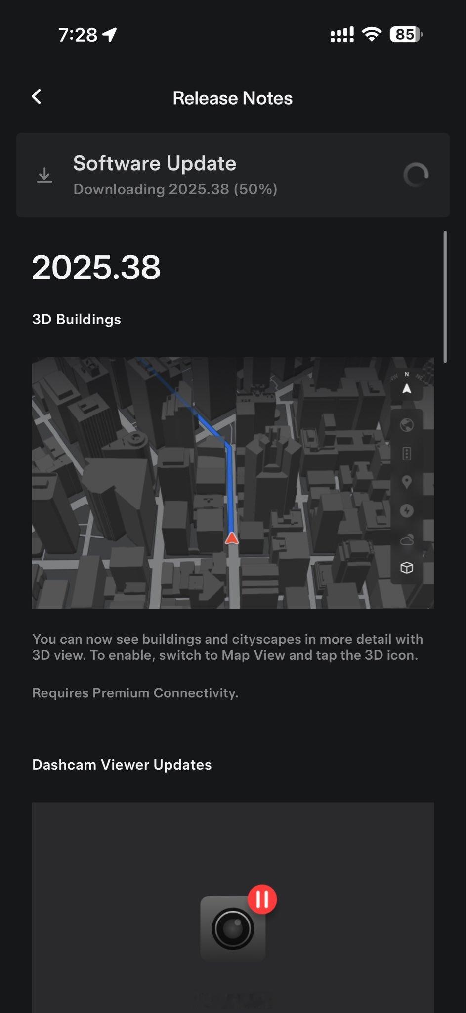 特斯拉2025.38版本软件更新带来3D建筑视图功能!