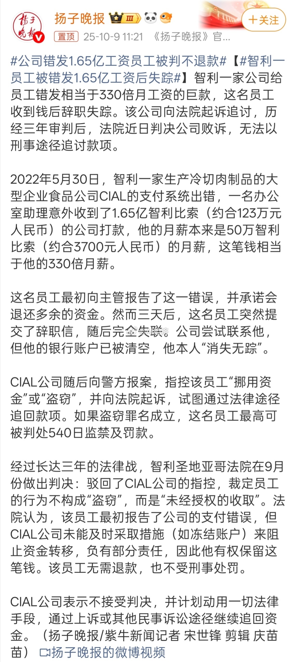 公司错发1.65亿工资员工被判不退款这是中国!谢谢!ATM机出错责任全在储户