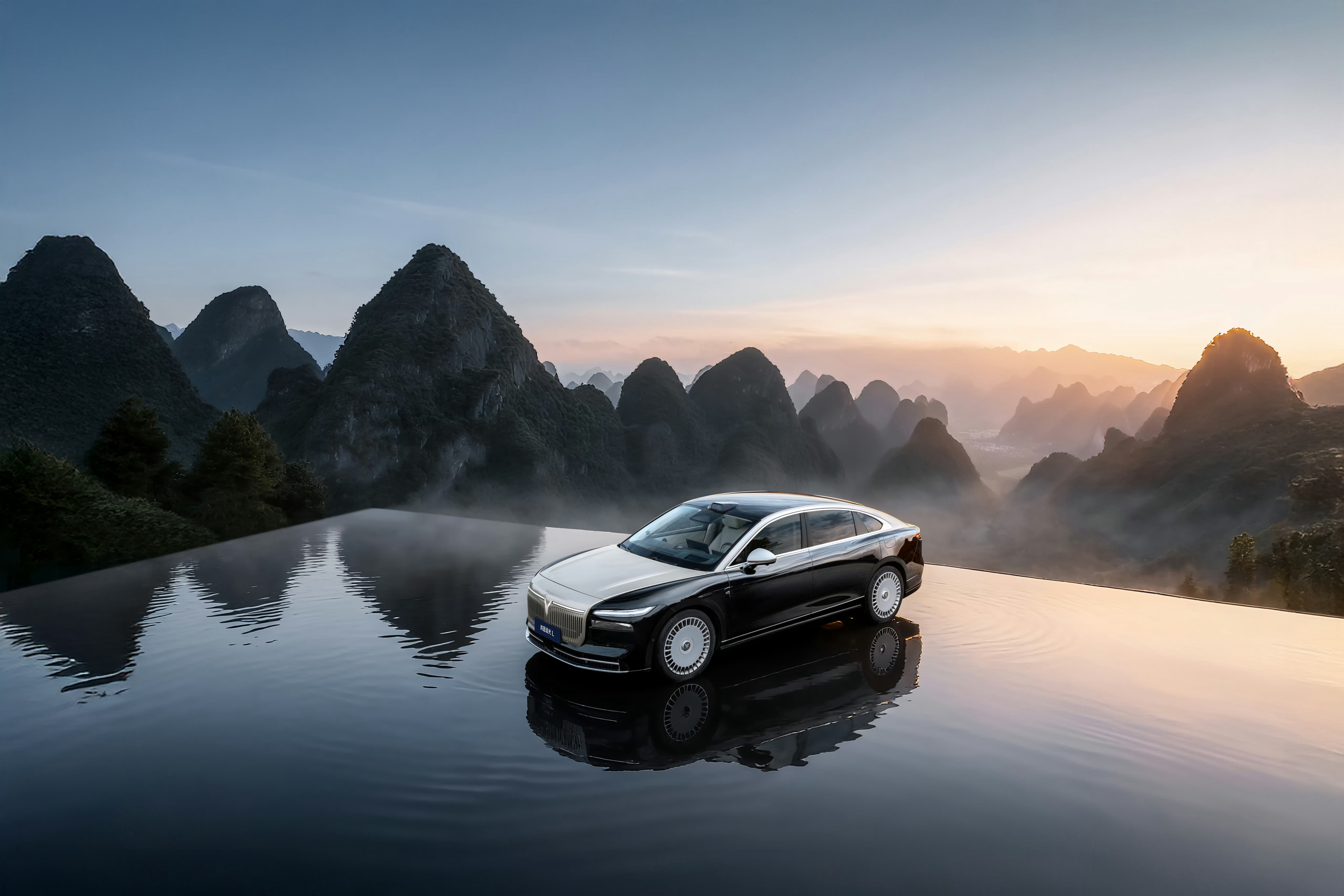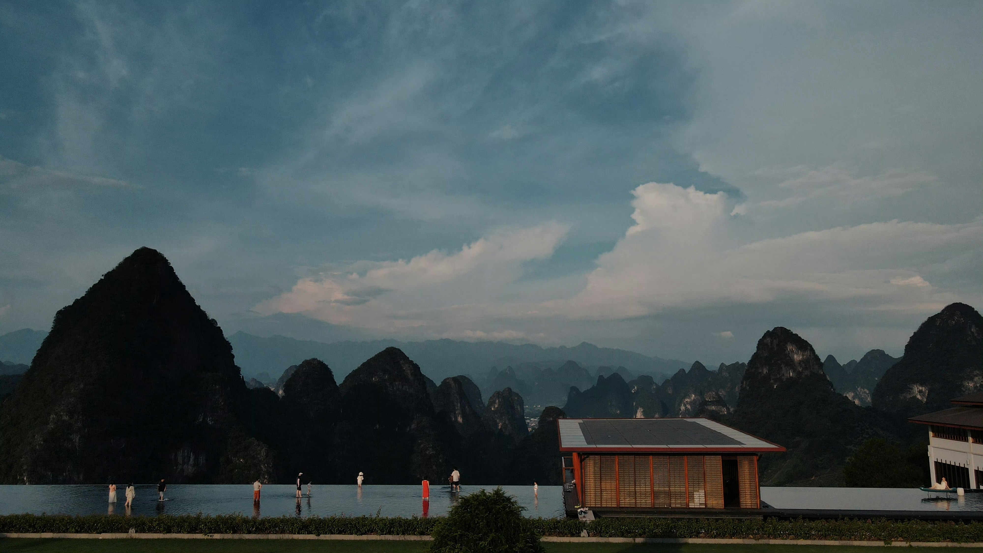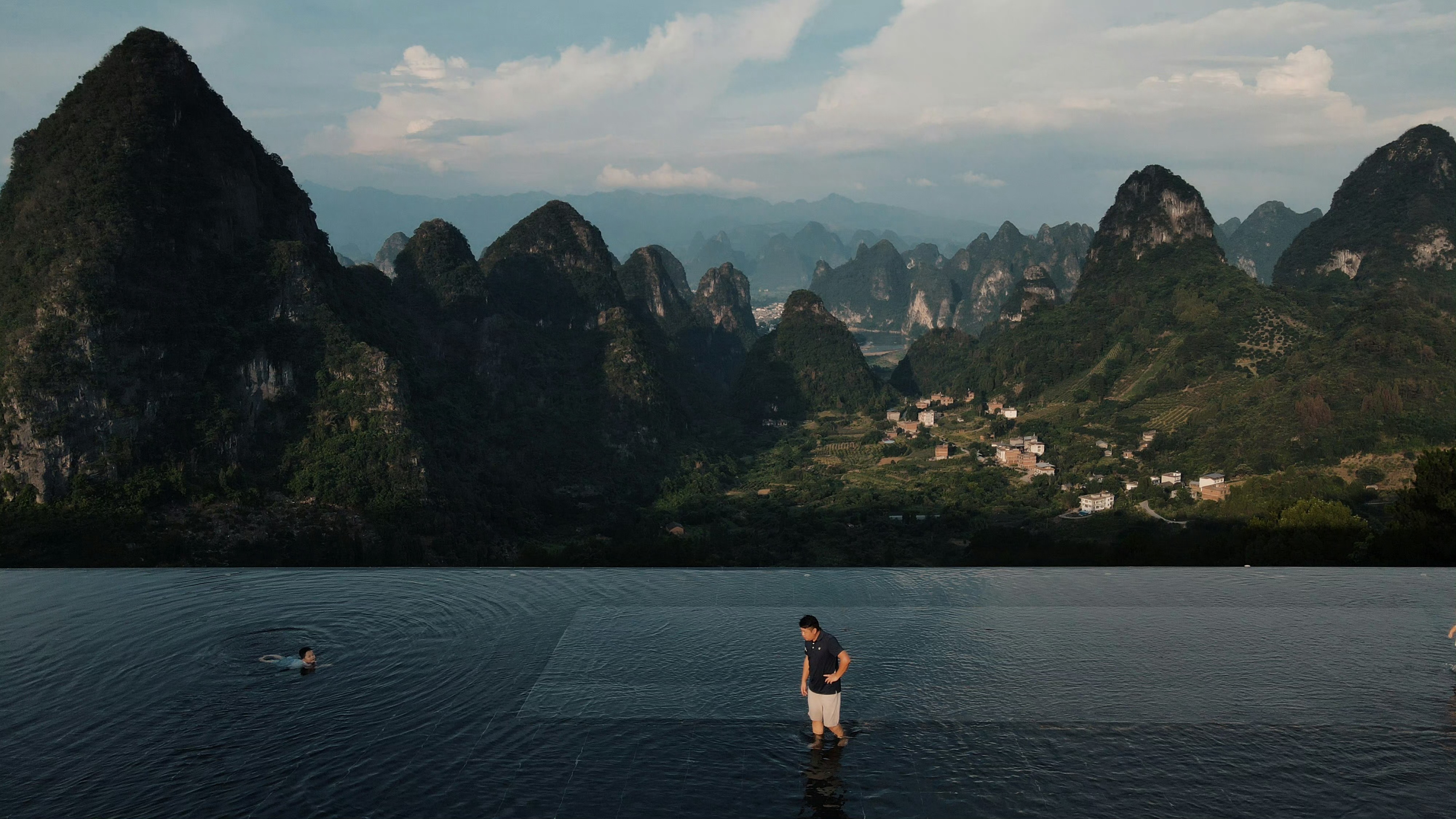 岚图追光L这几张图、氛围极好,感觉应该是实拍,疑似在我大广西阳朔的{画山云舍},