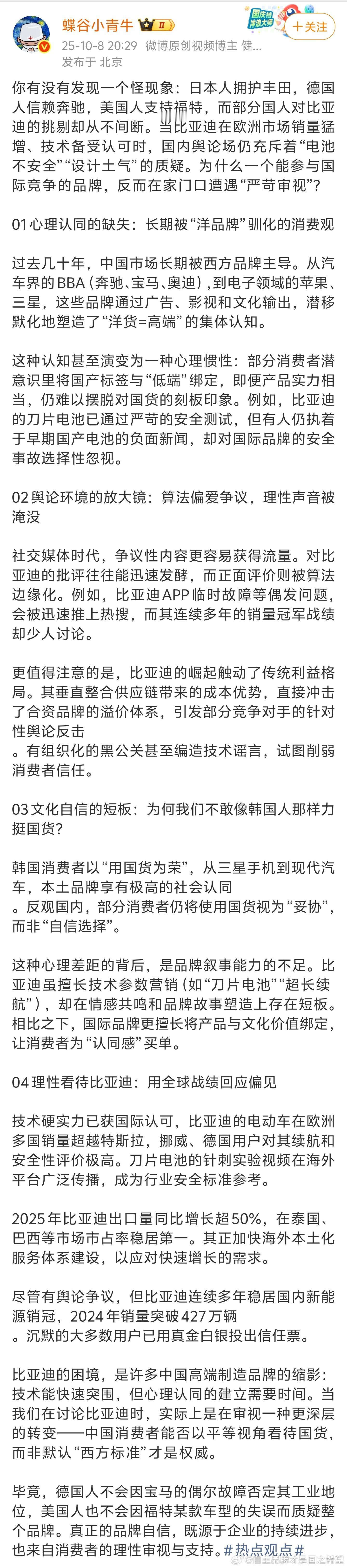 文章写的不错 国人对比亚迪总体上还是认可的,这一点从比亚迪稳居国内销冠能体现出来。
