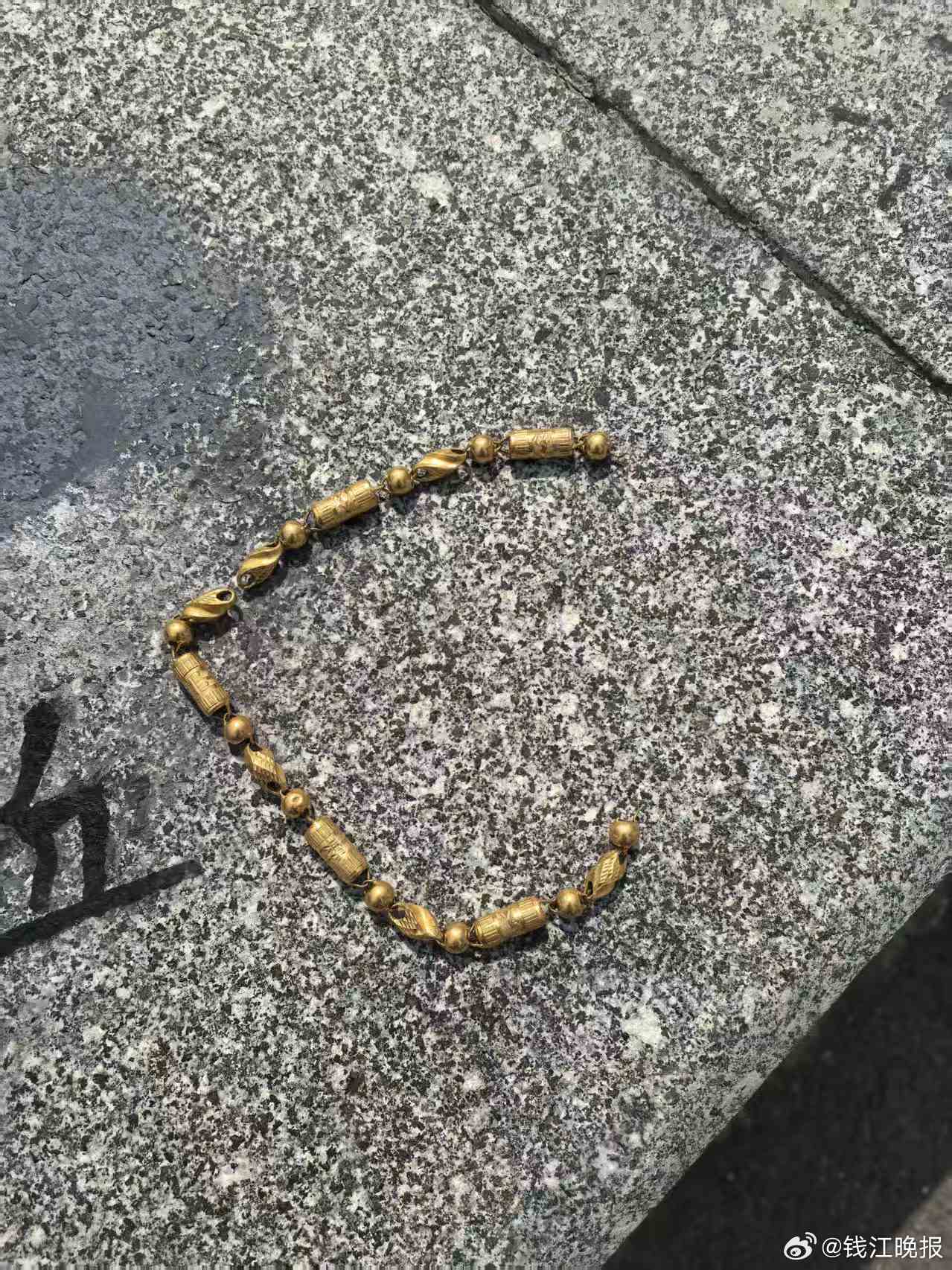 经询问,原来车上的“熊孩子”情绪失控,一把扯断了正在开车的父亲脖子上的金项链,并强行打开了正在行驶中的车辆的门,将手中的部分金项链甩出了车外。
