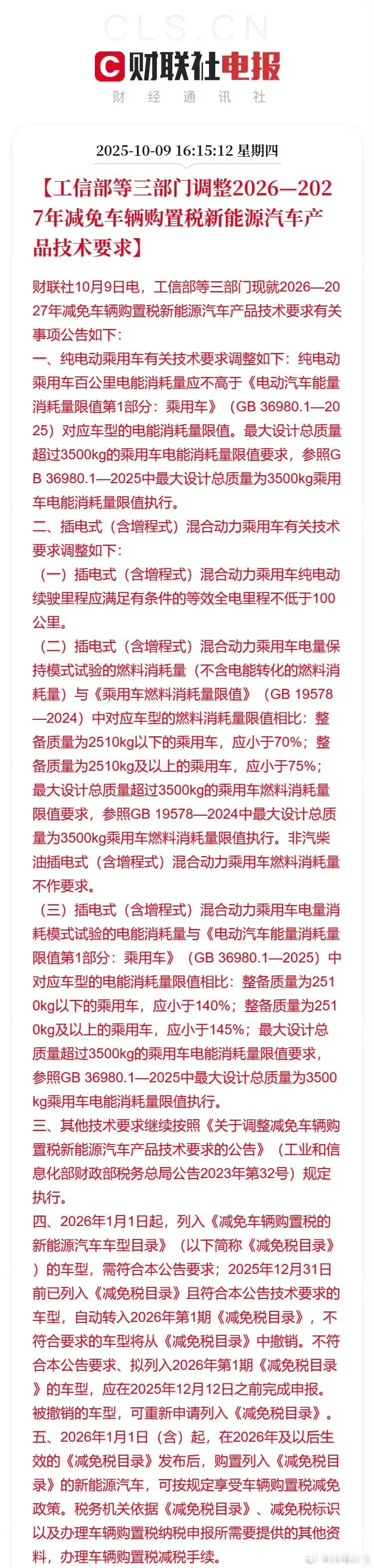 明年开始 新能源车纯电续航里程低于100km不减免购置税了。