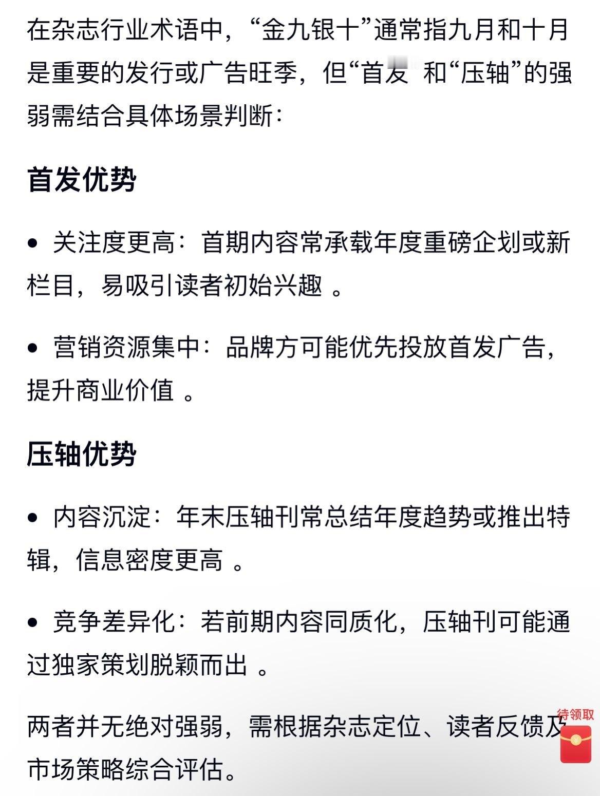 科普一下吧首发关注度更高,商业价值也高,通常重磅企划而只有年末刊总结年度趋势算压