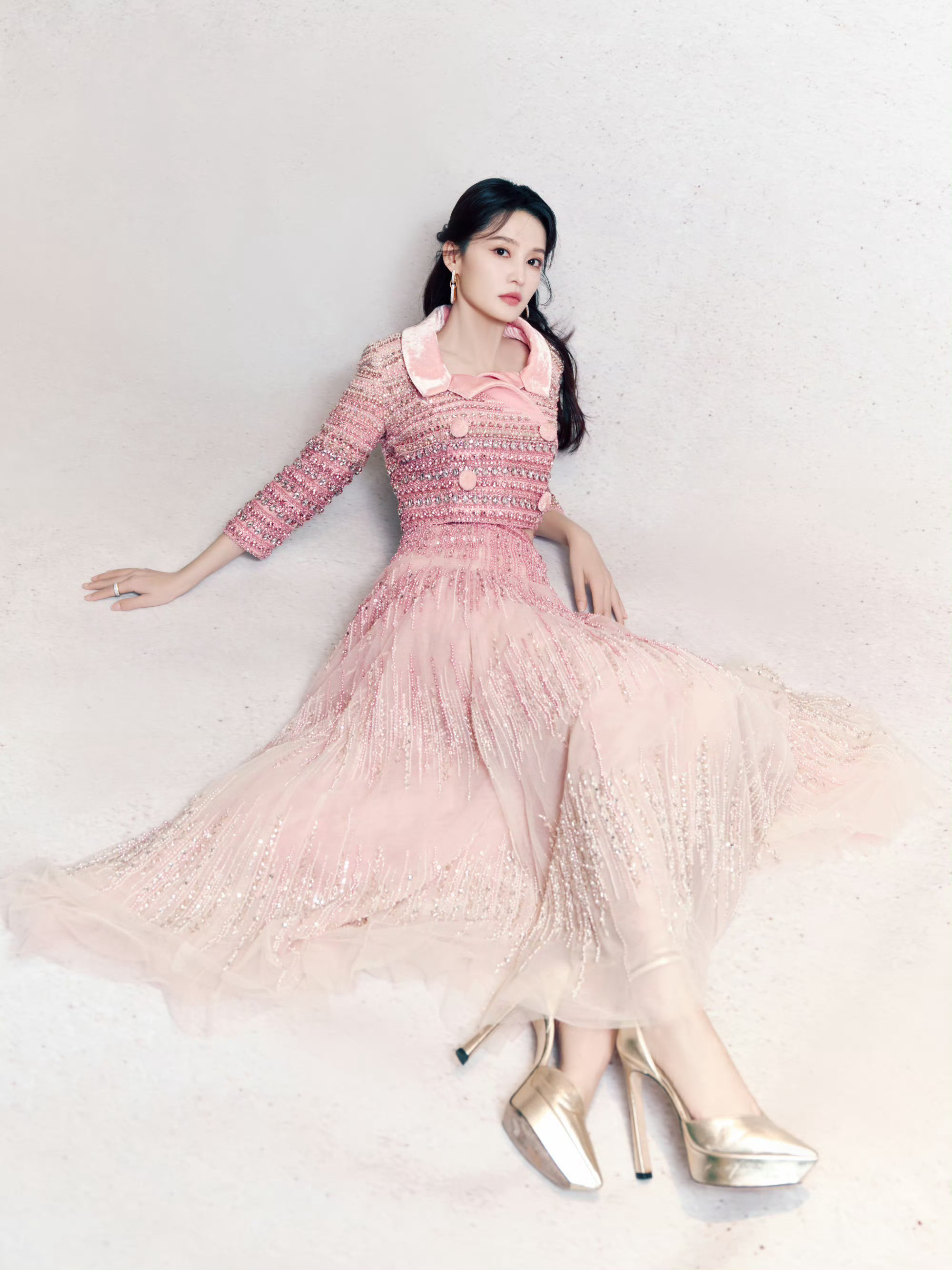 李沁真的35岁的年龄70岁的审美这个粉色套装一上身就感觉是赵雅芝喜欢的风格,和