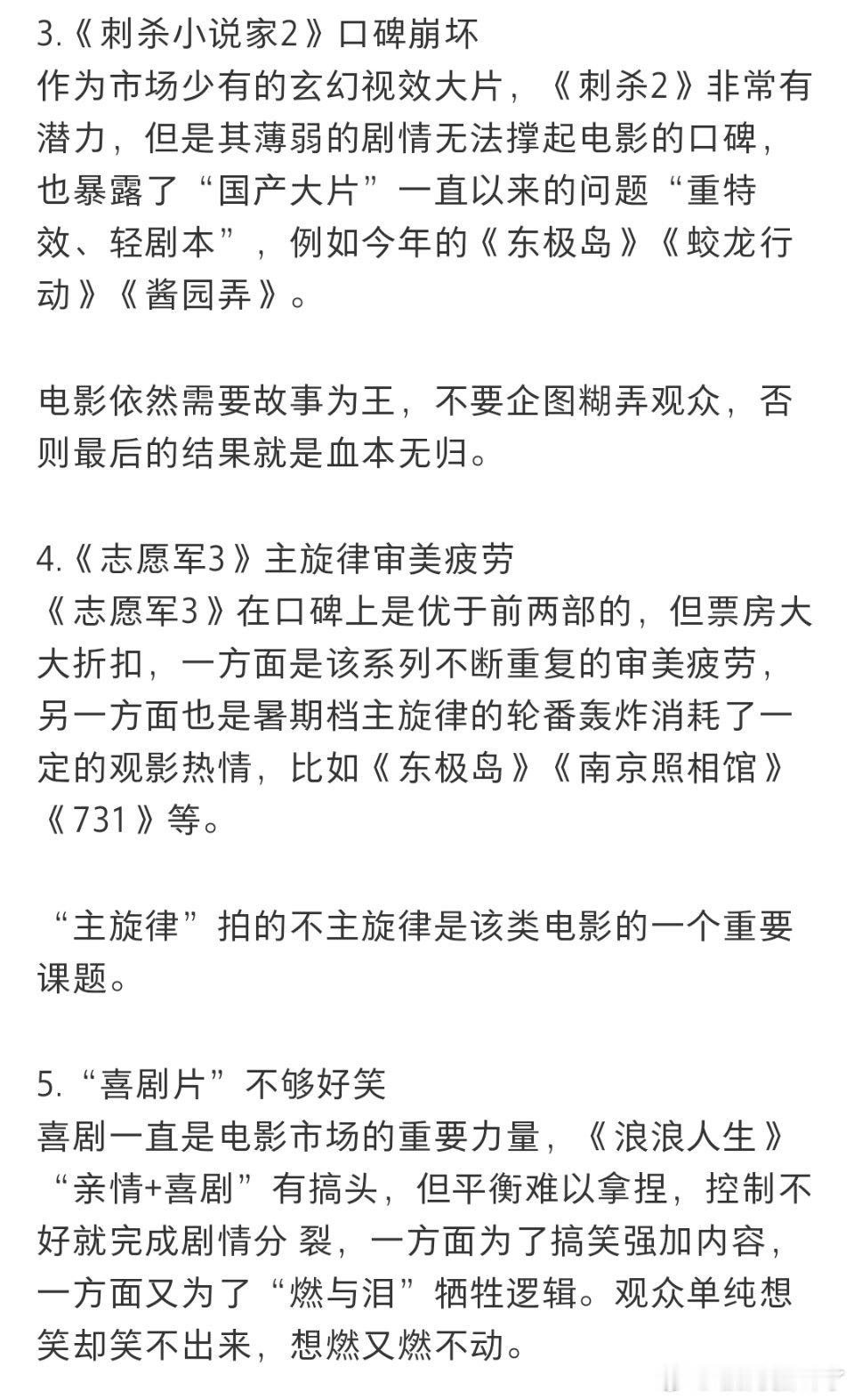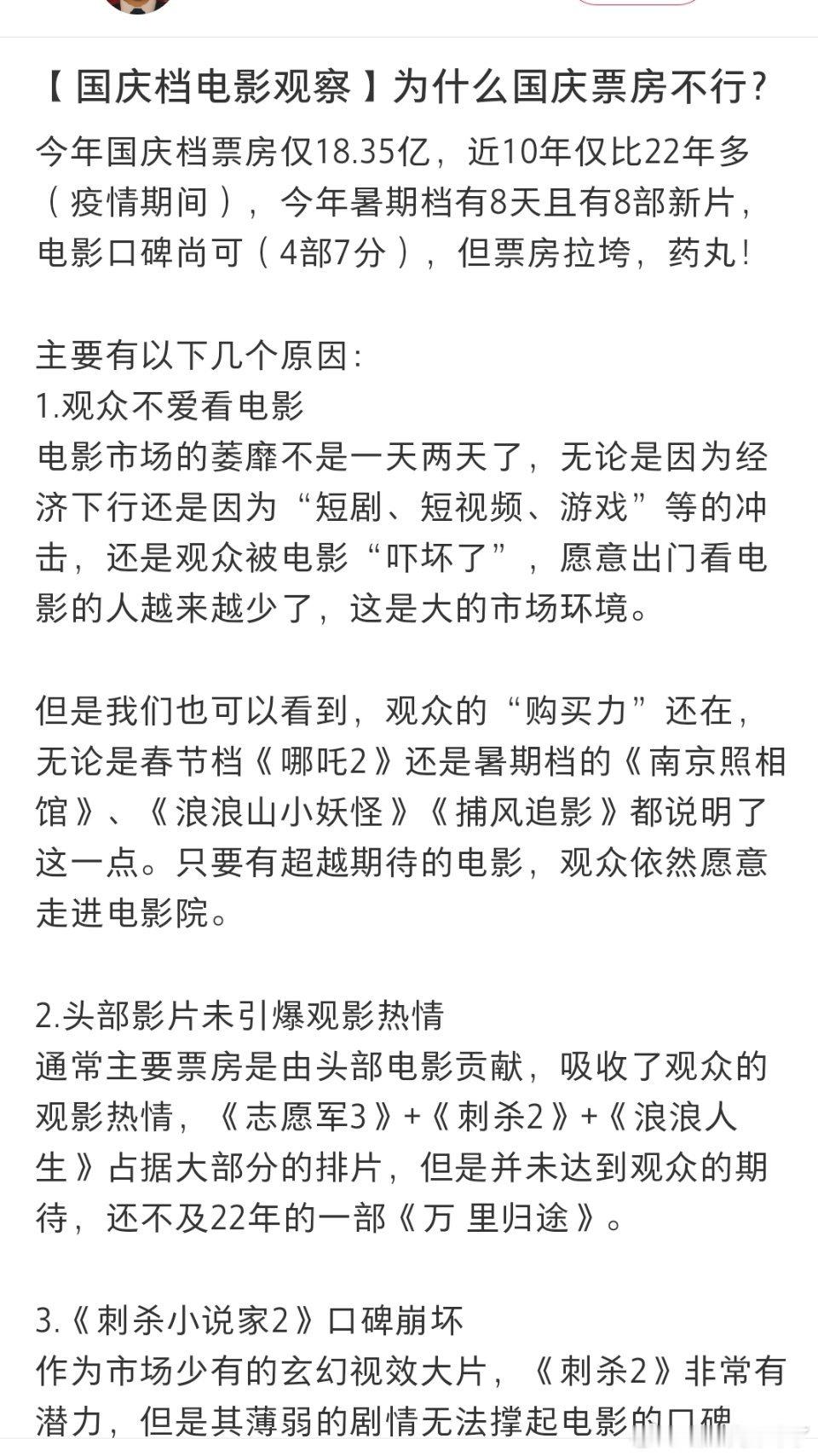 电影博主分析今年国庆档票房不行的原因: