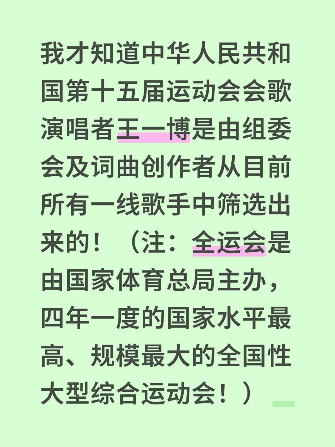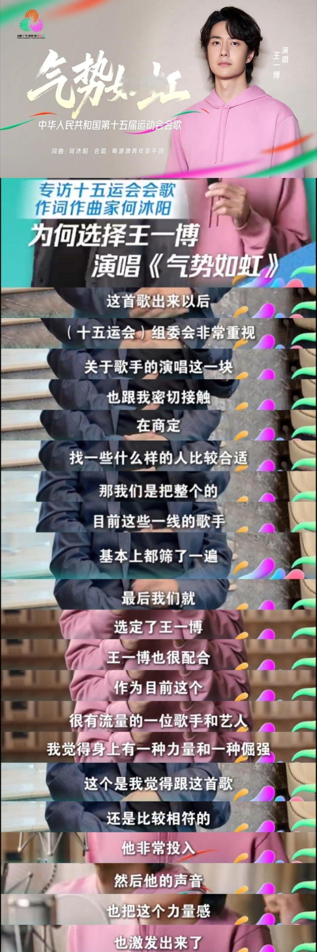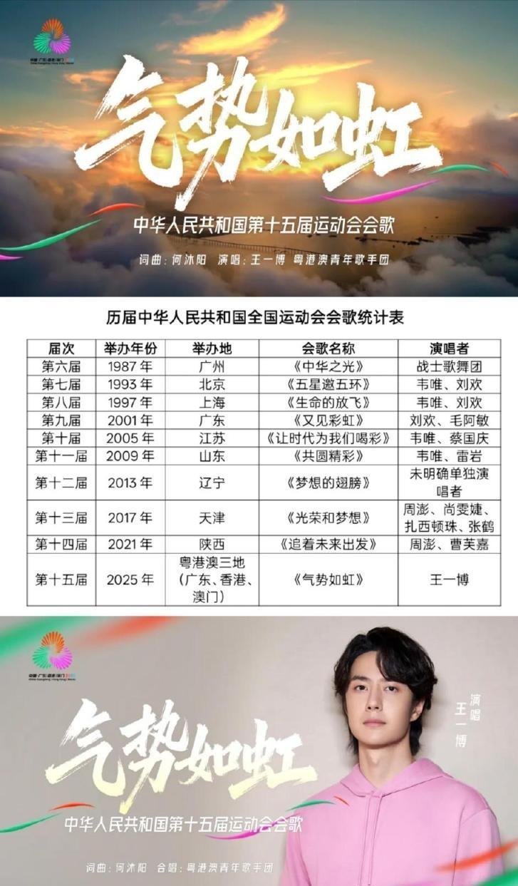 2️⃣王一博第3️⃣2️⃣首红歌,第十五届运动会会歌《气势如虹》,演唱者王一博是由组委会及词曲创作者从目前所有一线歌手中筛选出来的!全运会是由国家体育总局主办,四年一度的国家水平最高、规模最大的全国性大型综合运动会!所以,王一博还真是优秀的超乎所有人想象!