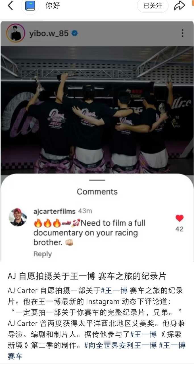 3️⃣AJ 自愿拍摄关于王一博 赛车之旅的纪录片。王一博演唱十五运会会歌王一博[超话]