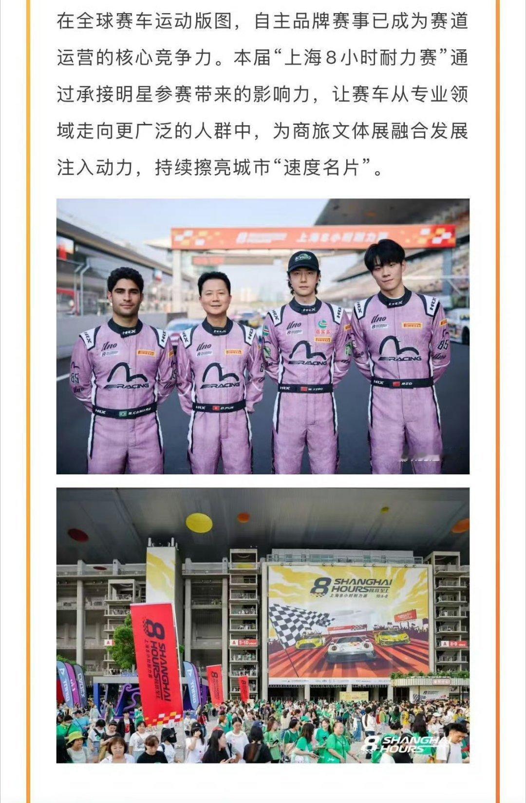 1️⃣王一博参加上海八小时耐力赛,在赛事现场观众中,近九成是来自上海以外的地区,40岁以下年轻群体占到总人数的80%以上。长假期间,上海8小时耐力赛通过吸引外地观众,极大带动了区域酒店、旅游、餐饮、购物等消费,王一博小金猪实锤,一己之力带动消费。