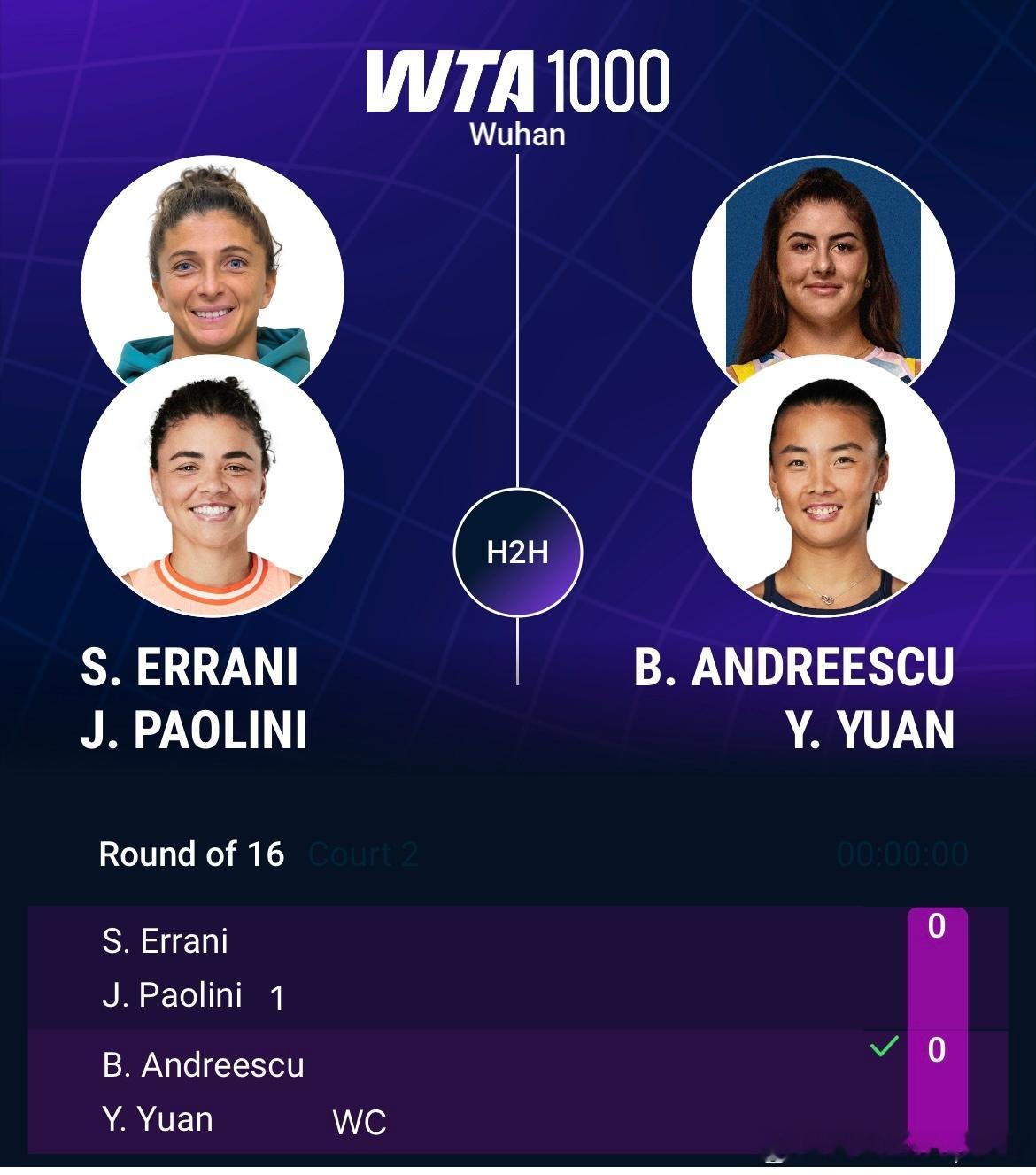 🇨🇳袁悦/🇨🇦安德内斯库对手1号种子 🇮🇹埃拉尼/🇮🇹保利尼退赛